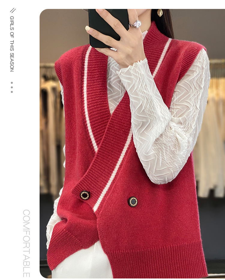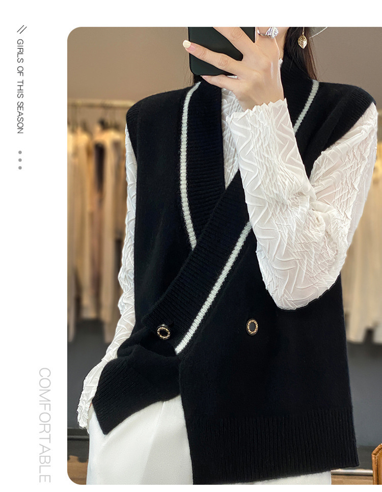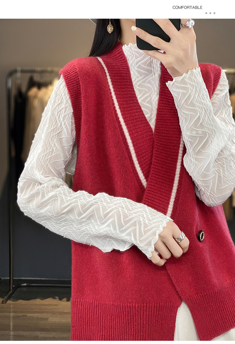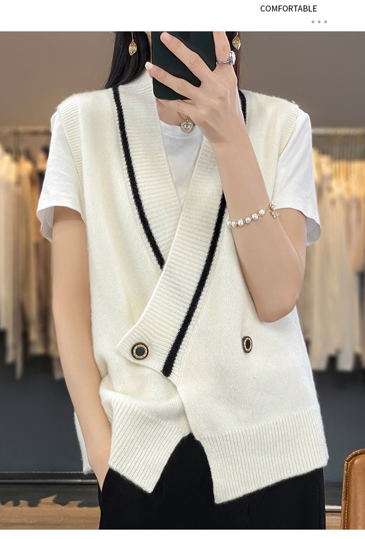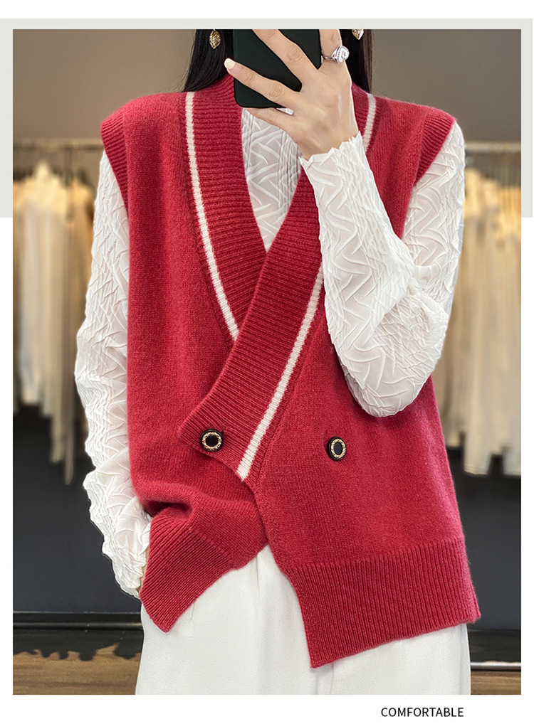 여성용 조끼 니트 조끼 봄, 가을 2025 새로운 v 넥 느슨한 게으른 스웨터 여성용 겉옷을위한 세련된 레이어드 탑스토어 가기