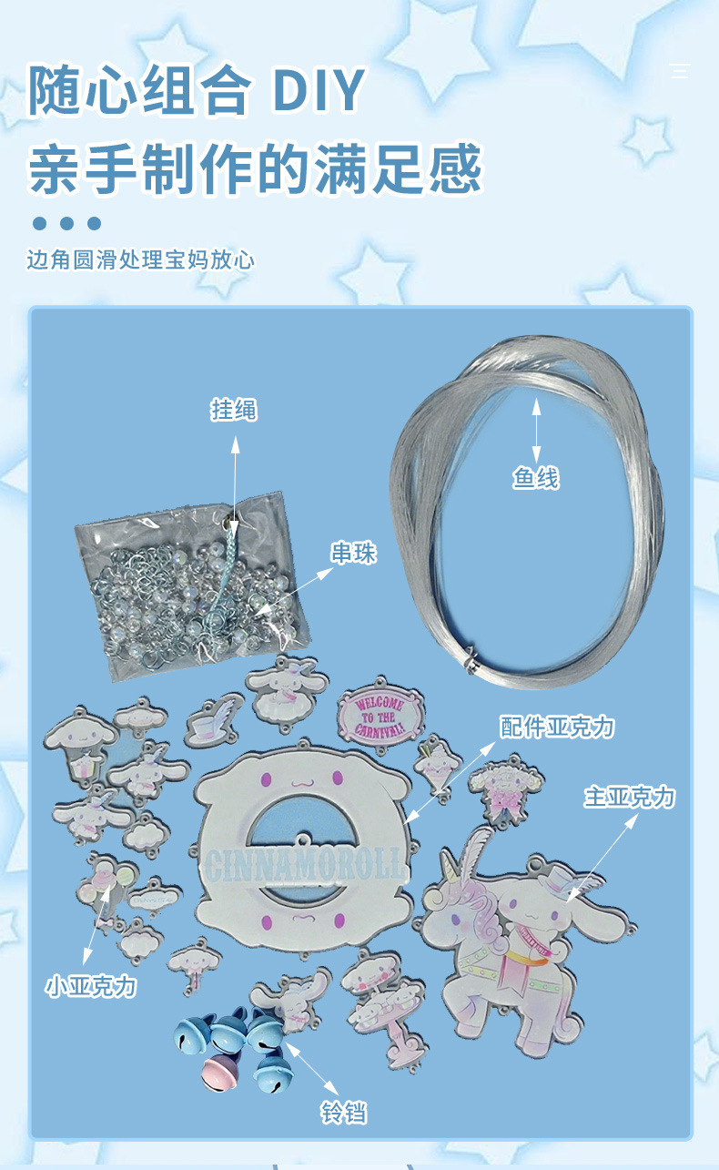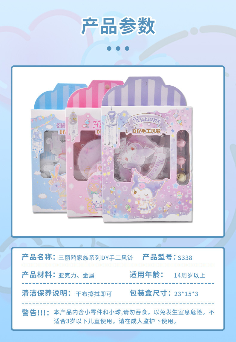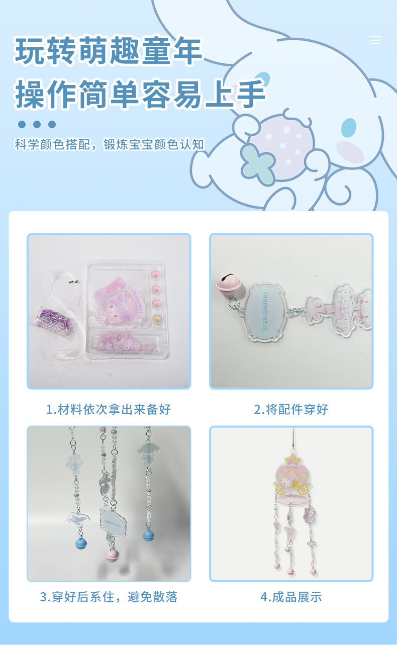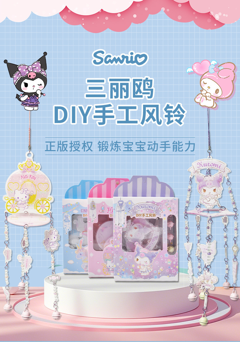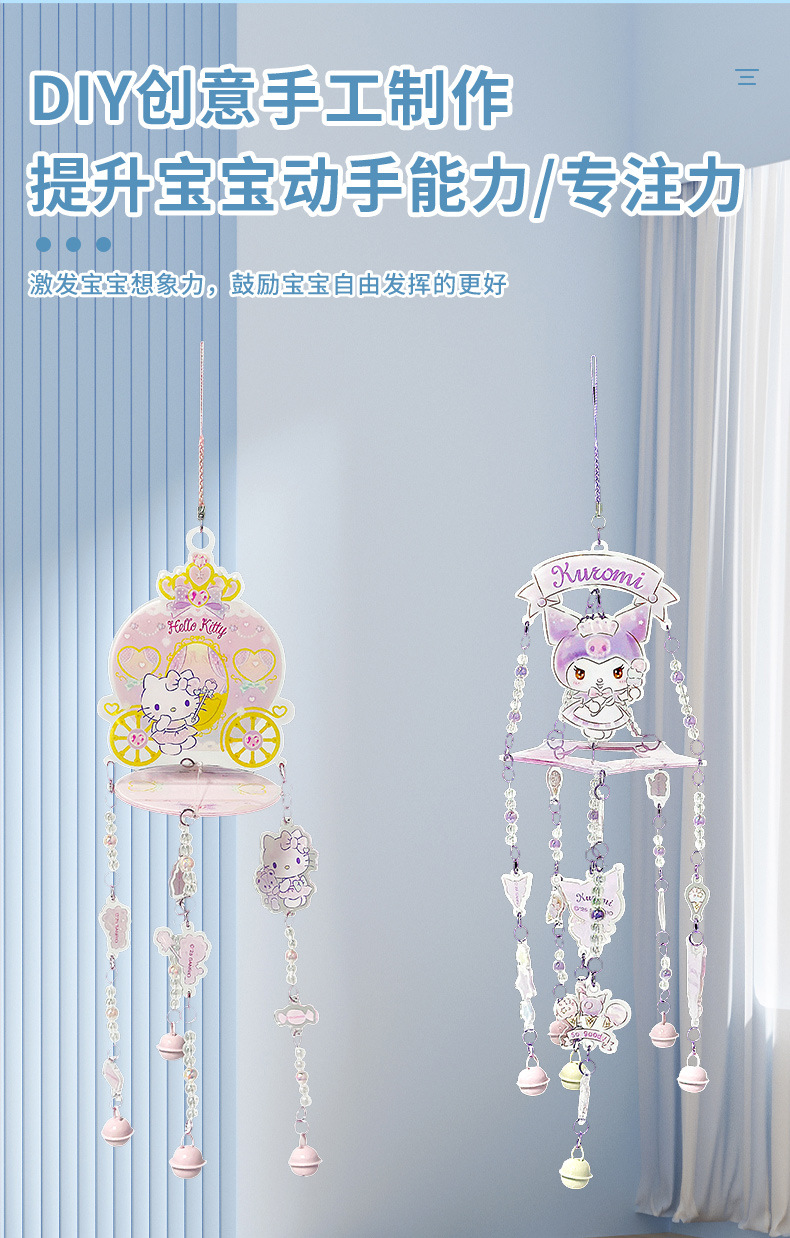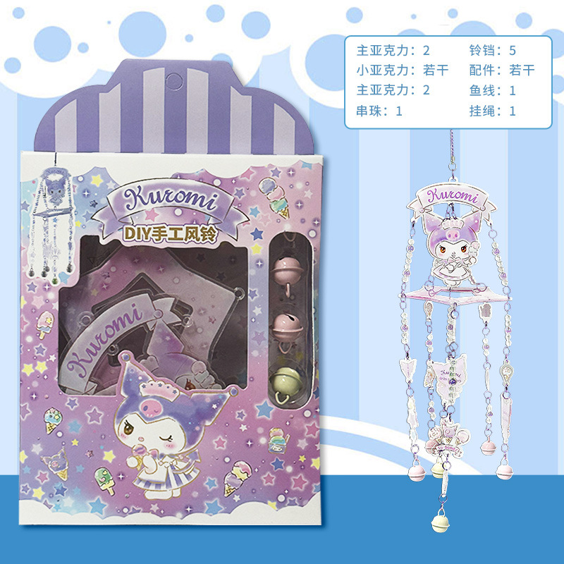 새로운 Sanrio 정품 수제 바람 종소리 diy 재료 패키지 어린이 만화 접합 바람 종소리 실내 펜던트스토어 가기