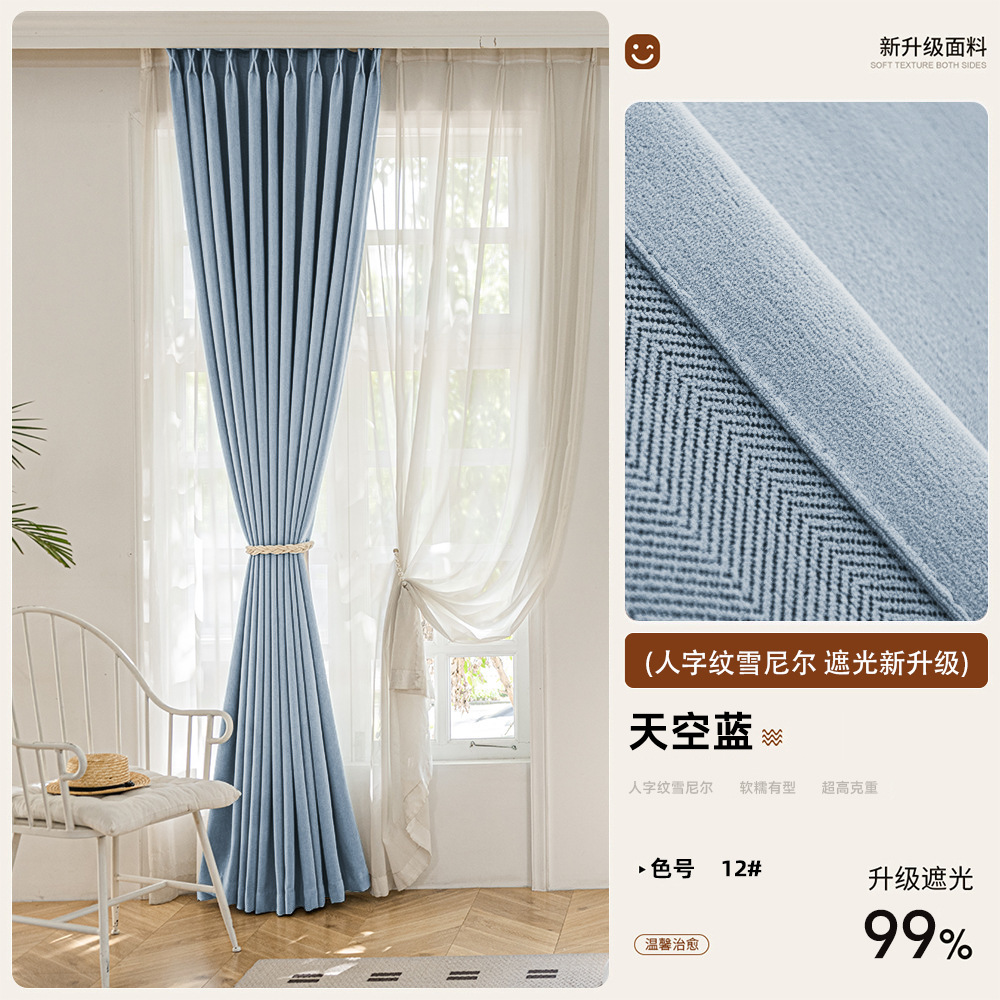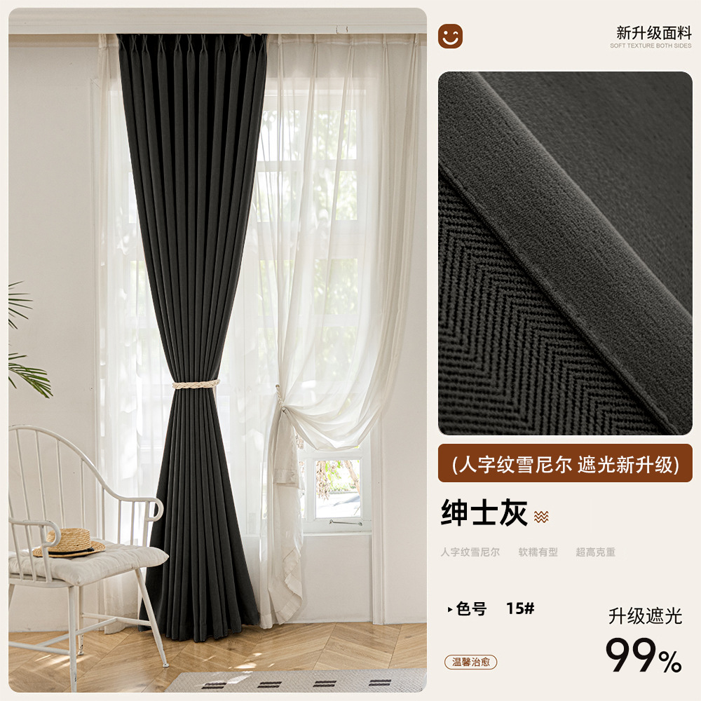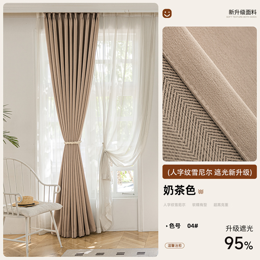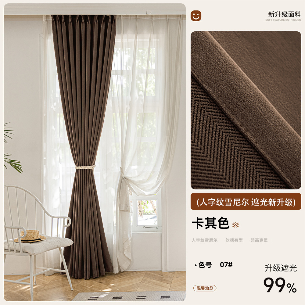 2025 새로운 양면 헤링본 커튼 빛 차단 셔닐 침실 거실 커튼 크림 스타일 거실 하이 엔드