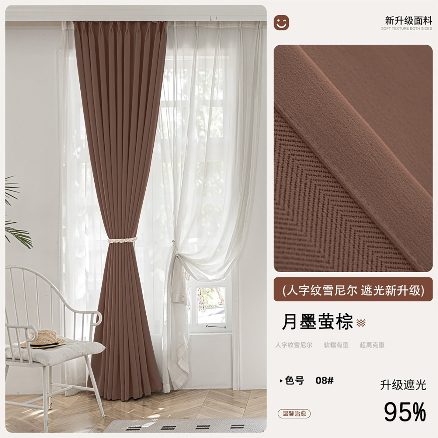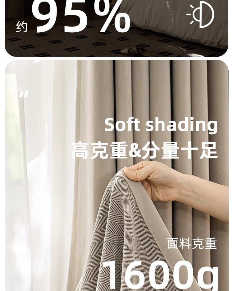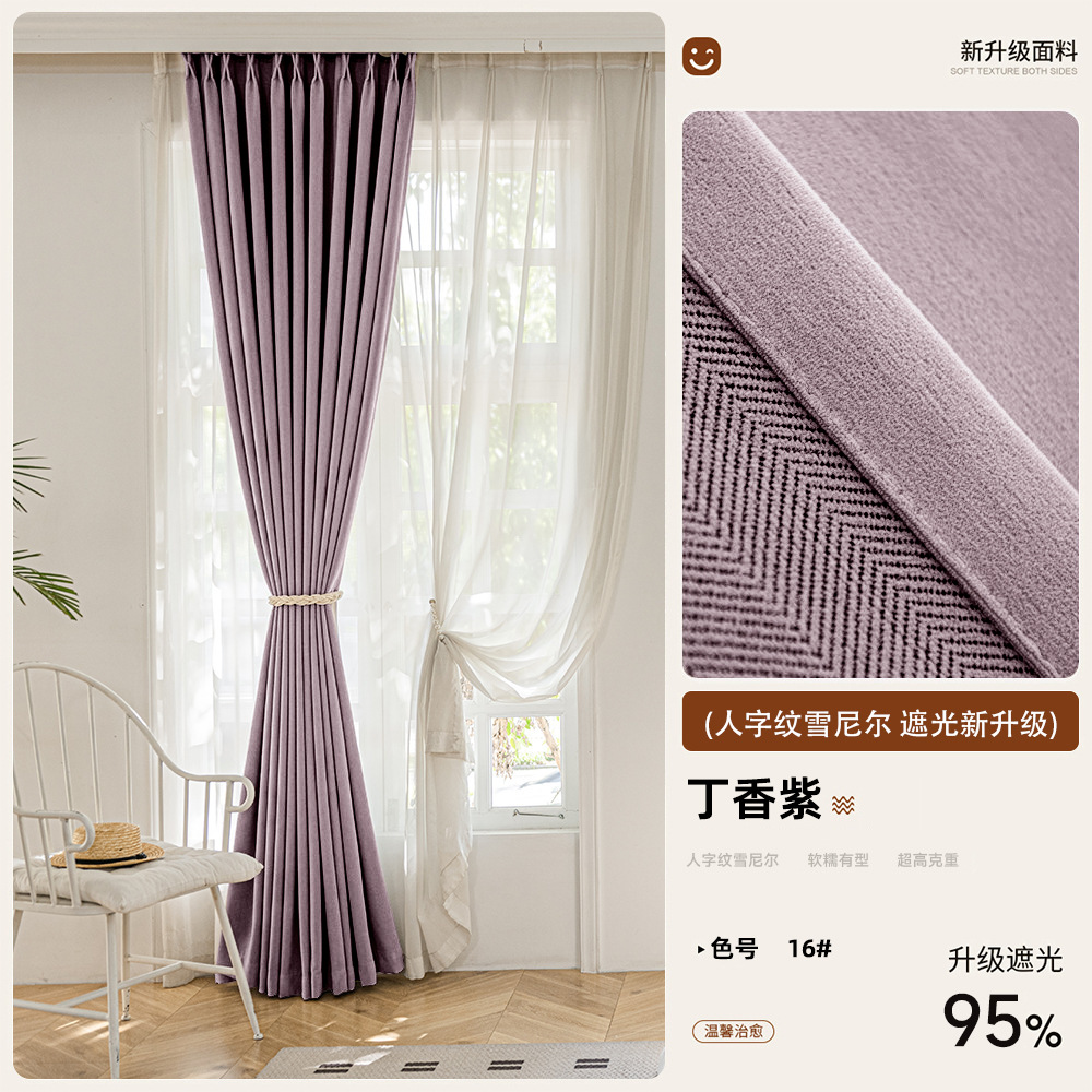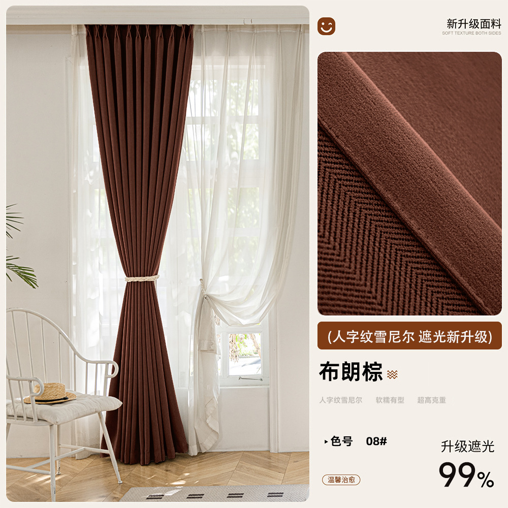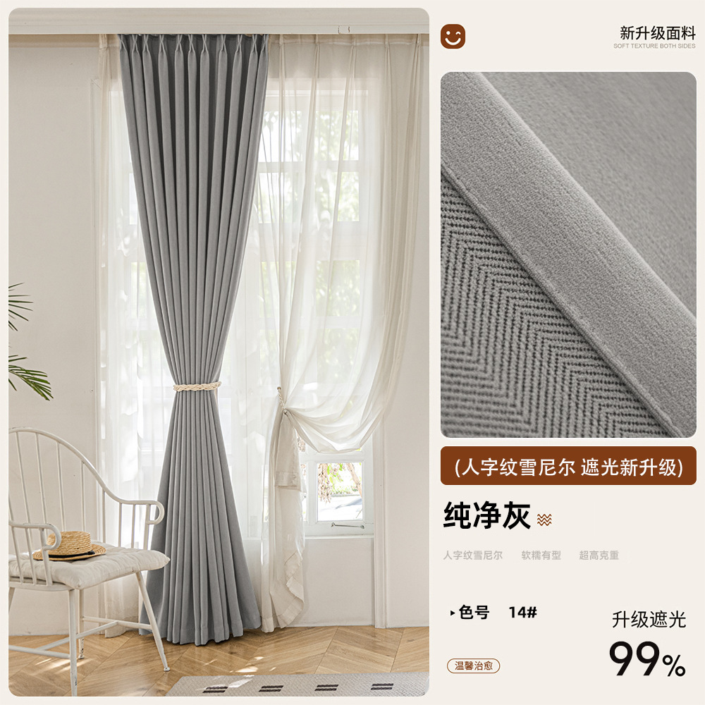 2025 새로운 양면 헤링본 커튼 빛 차단 셔닐 침실 거실 커튼 크림 스타일 거실 하이 엔드