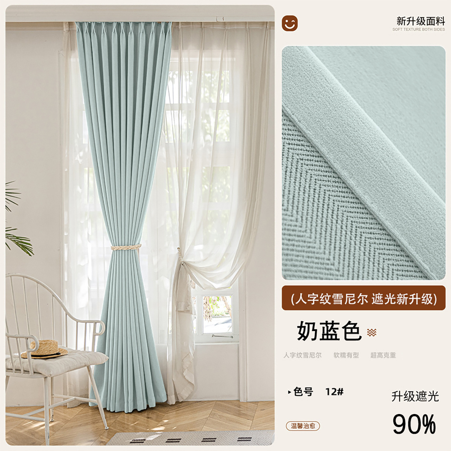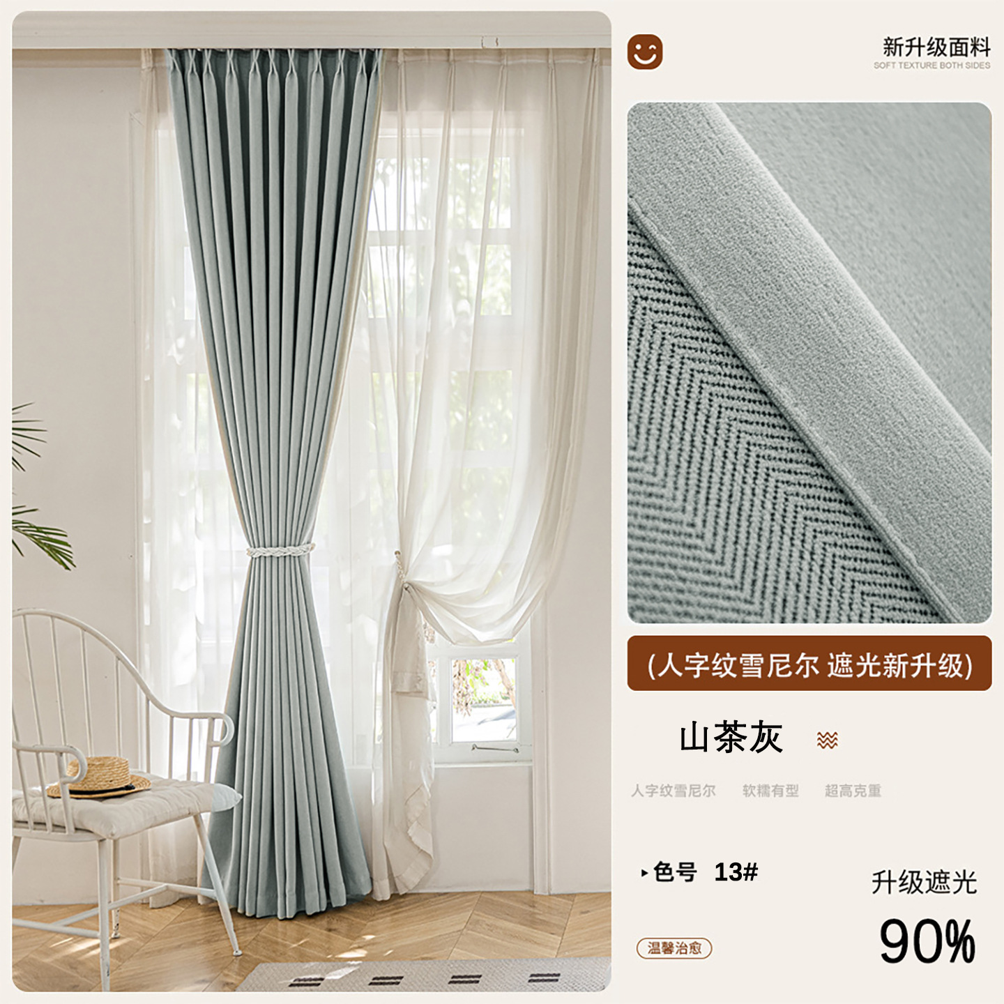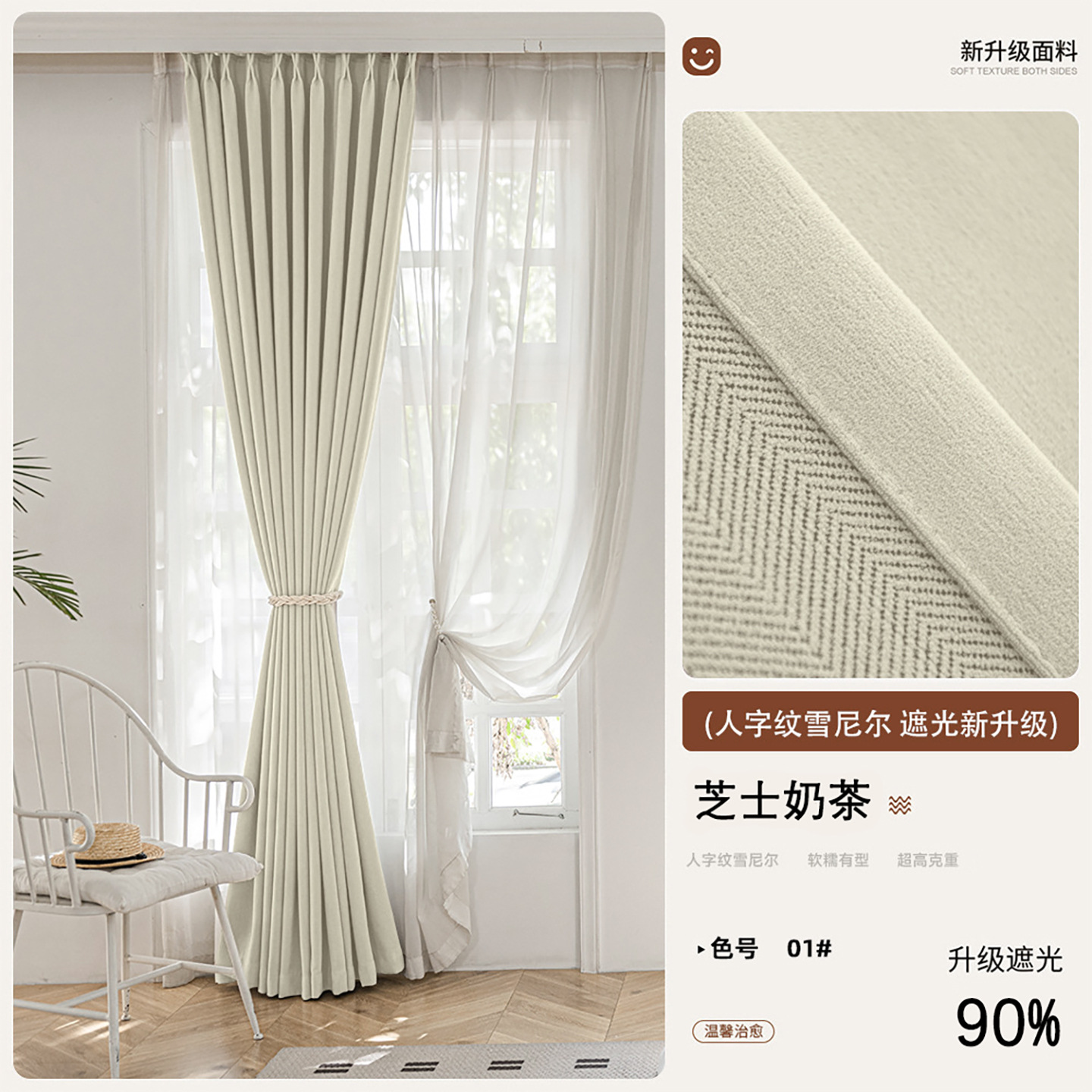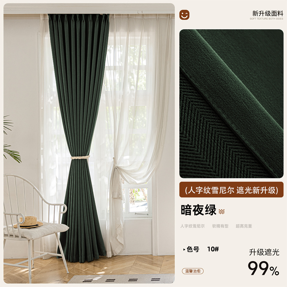 2025 새로운 양면 헤링본 커튼 빛 차단 셔닐 침실 거실 커튼 크림 스타일 거실 하이 엔드스토어 가기