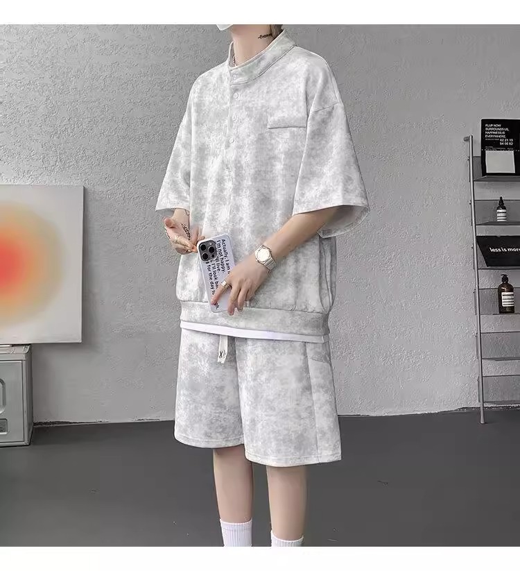 NASA 아메리칸 레트로 타이 염색 하프 지퍼 드라이 반팔 남성 플러스 사이즈 여름 아이스 실크 루즈 스포츠 투피스 세트