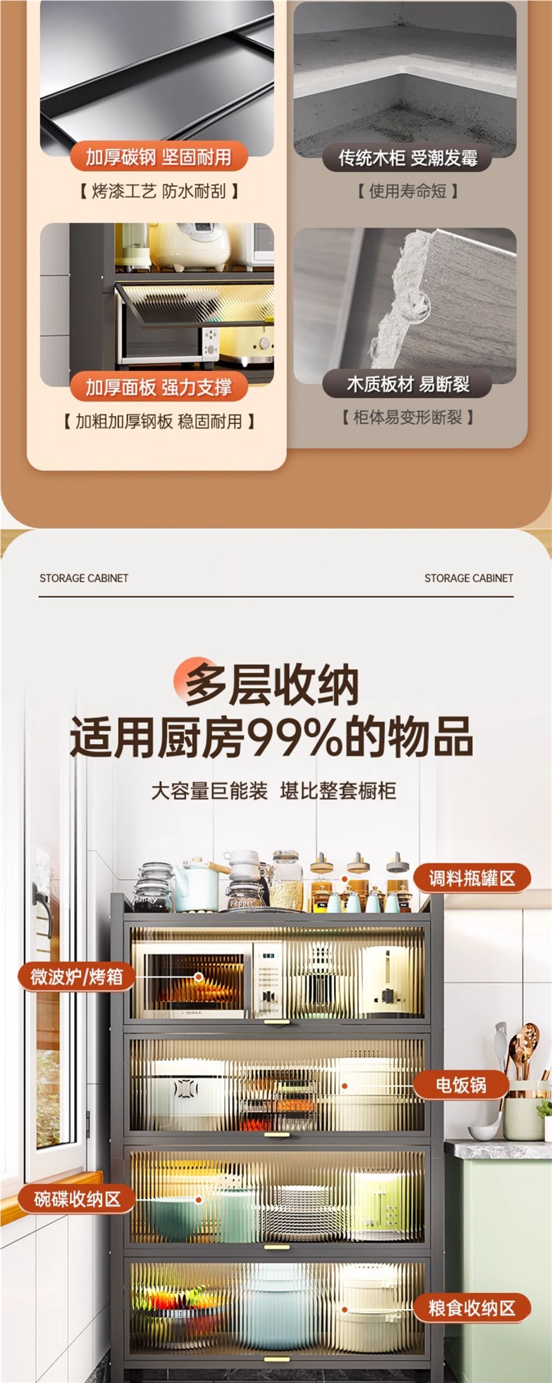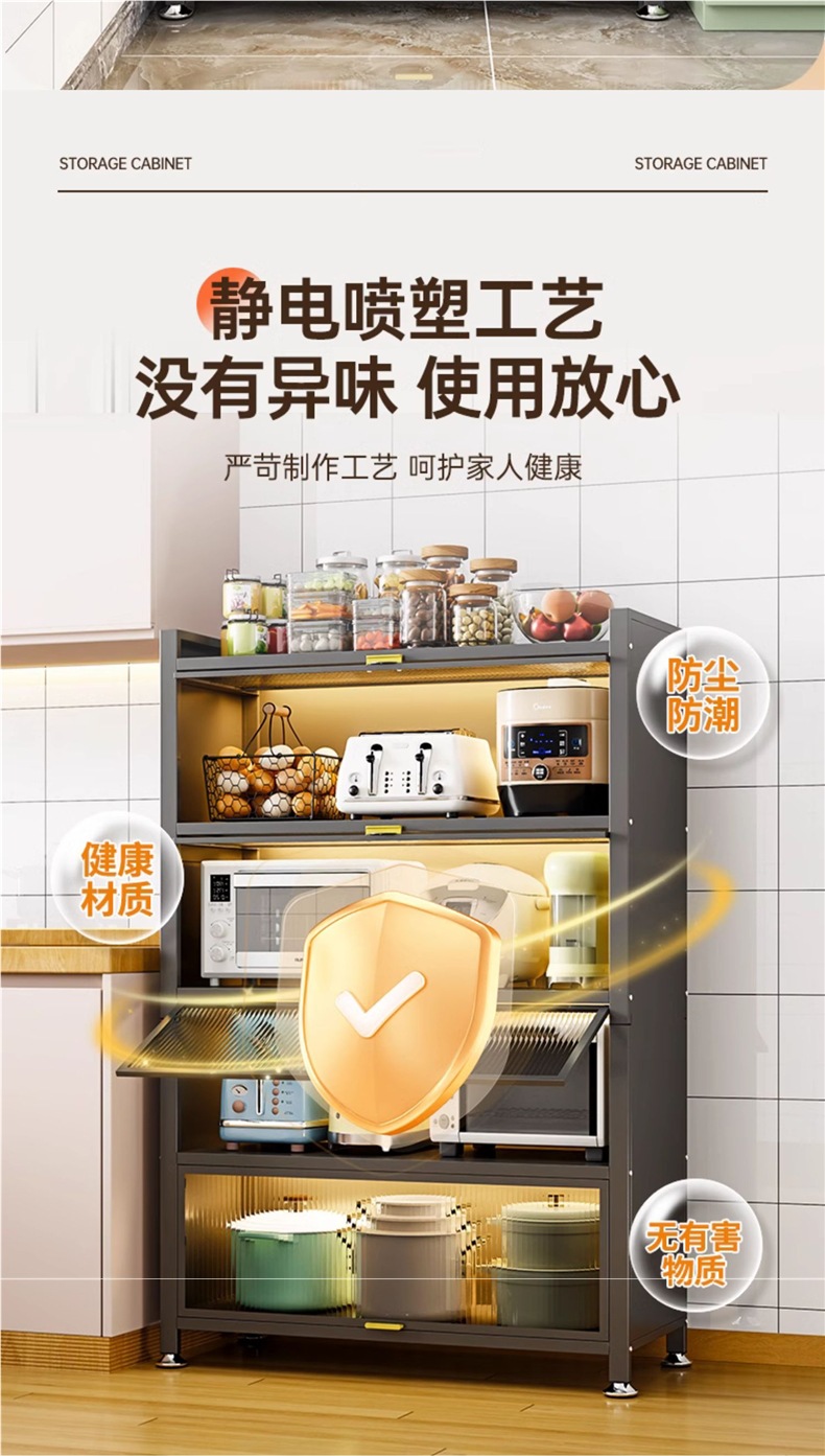 주방 랙 바닥에서 천장까지 다층 스토리지 캐비닛 전자 레인지 가정용 도어 다기능 캐비닛 방진 스토리지 캐비닛