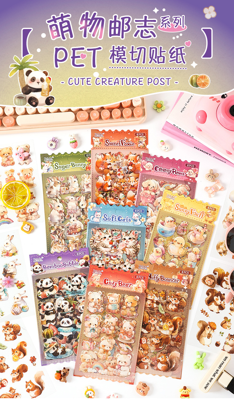 귀여운 우편물 투명 방수 애완 동물 스티커 diy 핸드북 일기 스티커 국경 간 만화 동물 귀여운 스티커스토어 가기