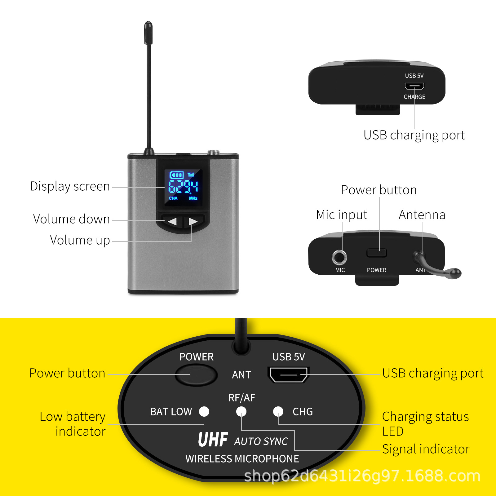 무선 범용 마이크 UHF 호스트 연설 무대 금속 1-1 라발리에 마이크 헤드 장착형 허리 팩 마이크