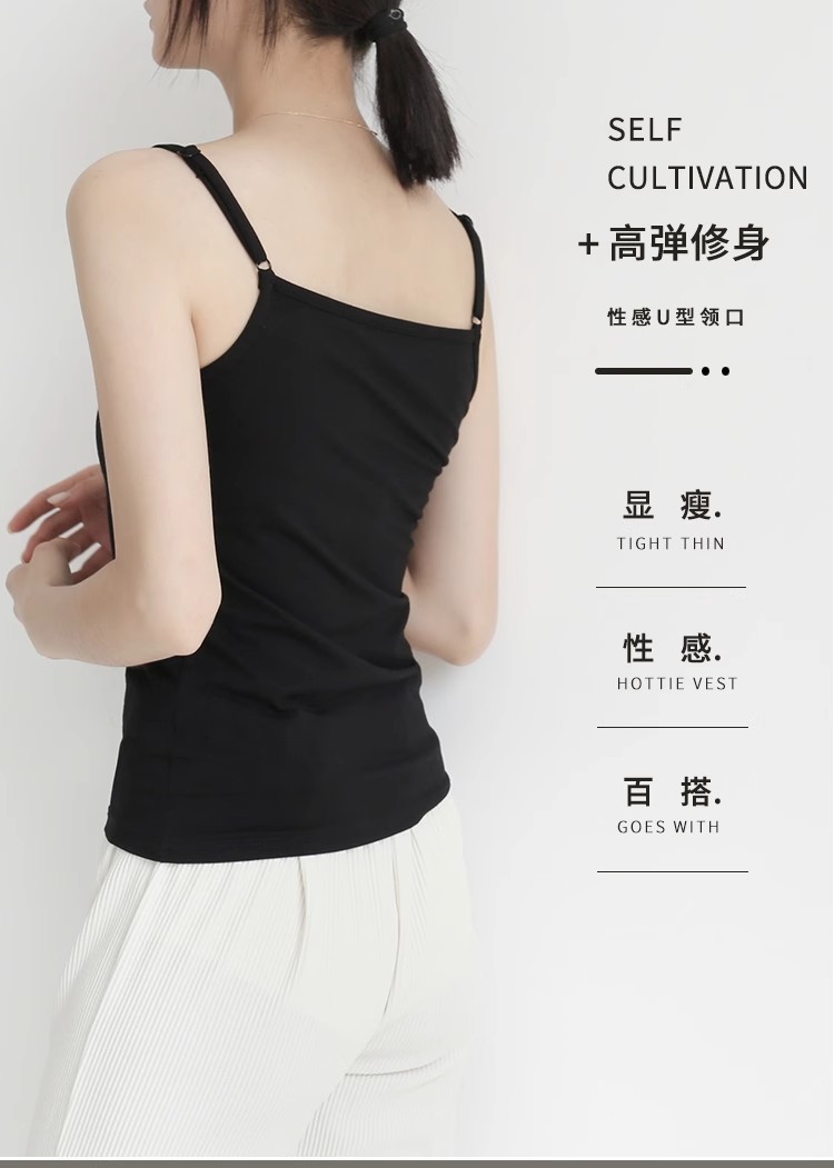 모달 조끼 캐미솔 신상 여성용 솔리드 컬러 여름 얇은 슬림핏 다용도 바닥 블랙은 밖에서 착용 가능