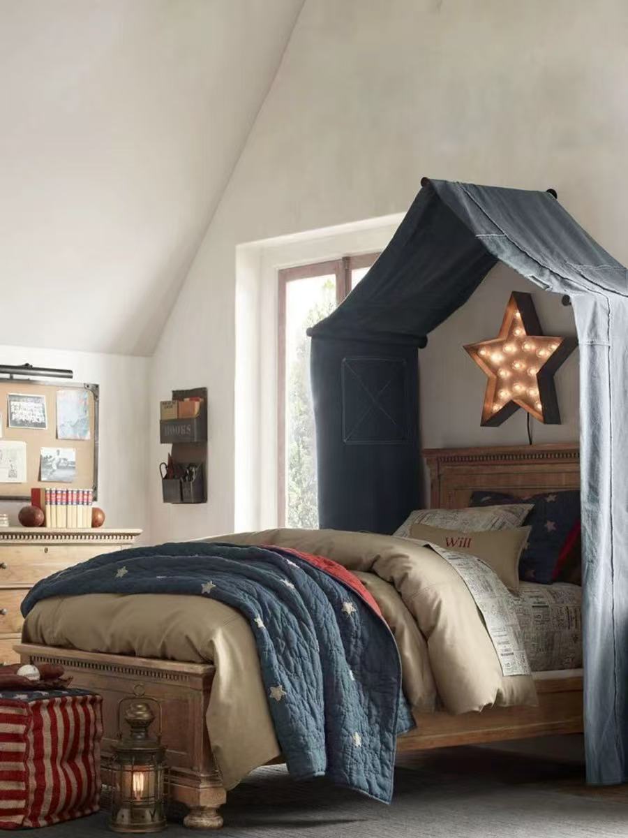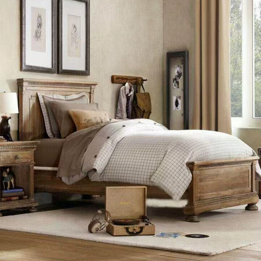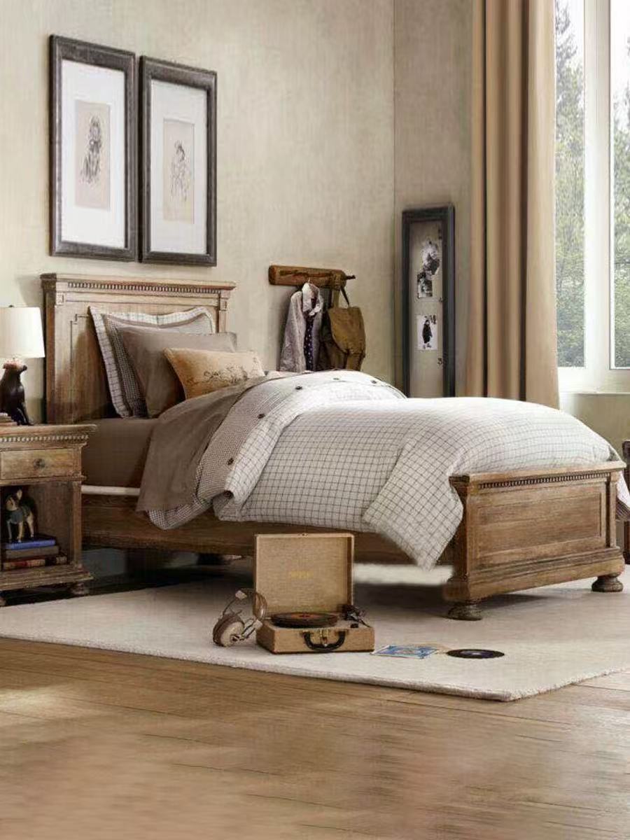 미국 복고풍 단단한 나무 침대 어린이 침대 프랑스 컨트리 1.2m 싱글 침대 오래된 소년 침대 침실 가구스토어 가기