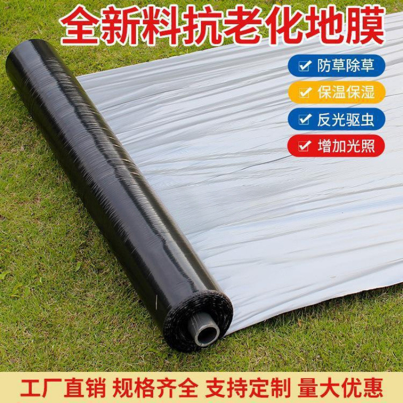 농업용 두꺼운 은색 및 검정색 2색 반사 비닐 필름은 보온 및 식물 재배 방지를 제거하고 비닐 필름을 제거하여 해충을 방지합니다.