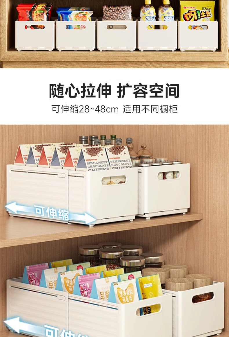 Xingyou 개폐식 캐비닛 보관 상자 서랍 깊은 캐비닛 직각 풀 아웃 홈 정리 바구니 스낵 보관 상자스토어 가기