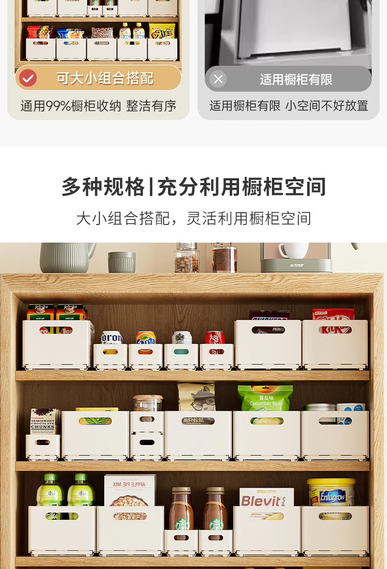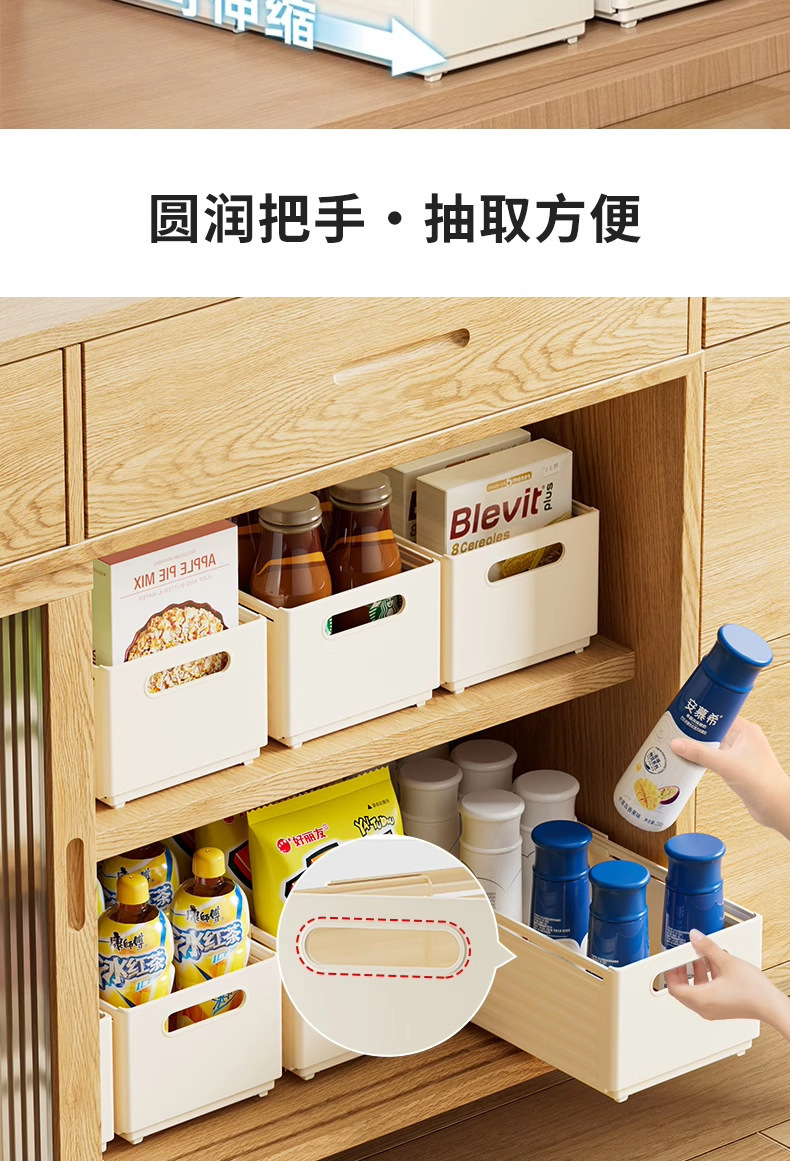 Xingyou 개폐식 캐비닛 보관 상자 서랍 깊은 캐비닛 직각 풀 아웃 홈 정리 바구니 스낵 보관 상자