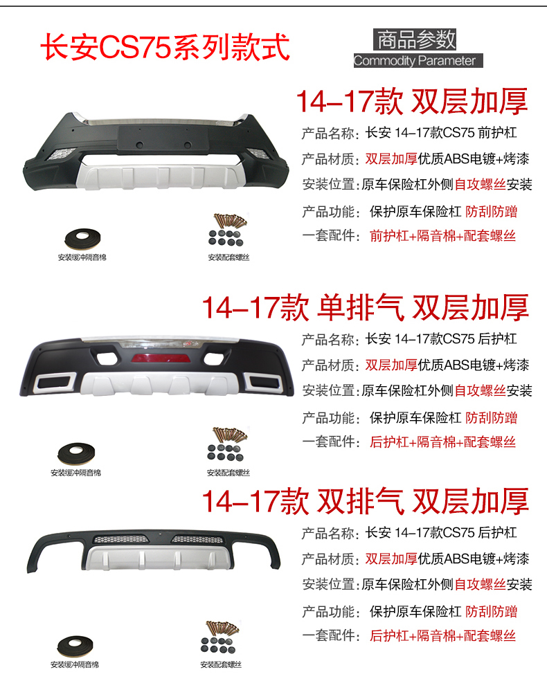 • 전면 및 후면 범퍼-No-14-17 구형 CS75 범퍼 단일 배기
