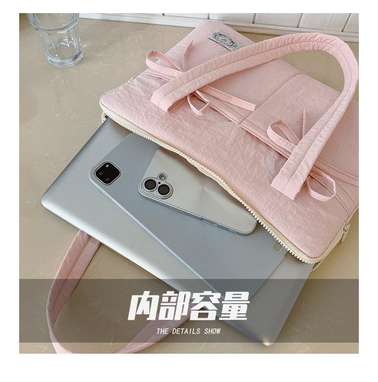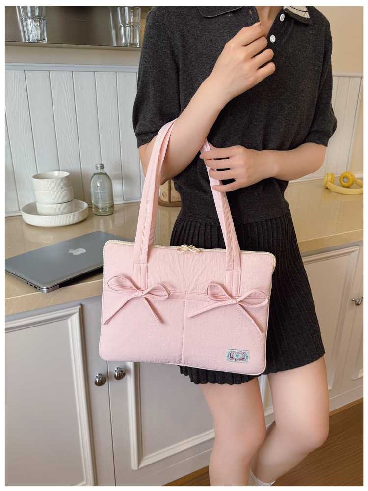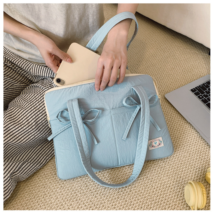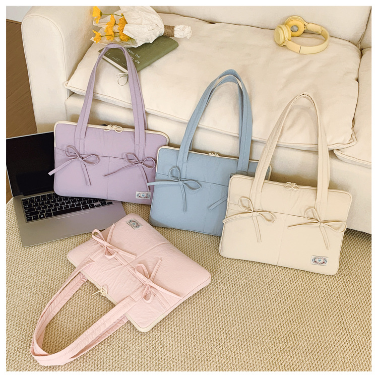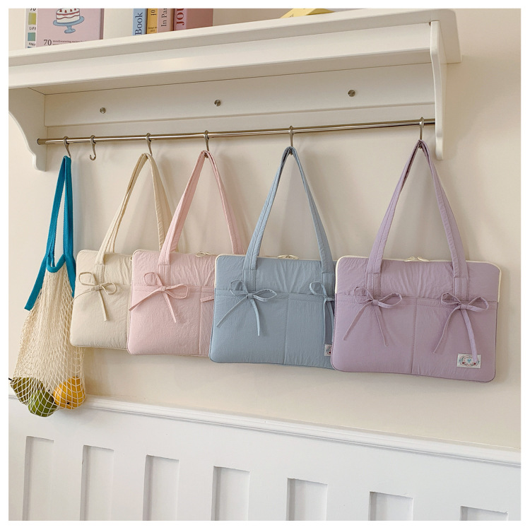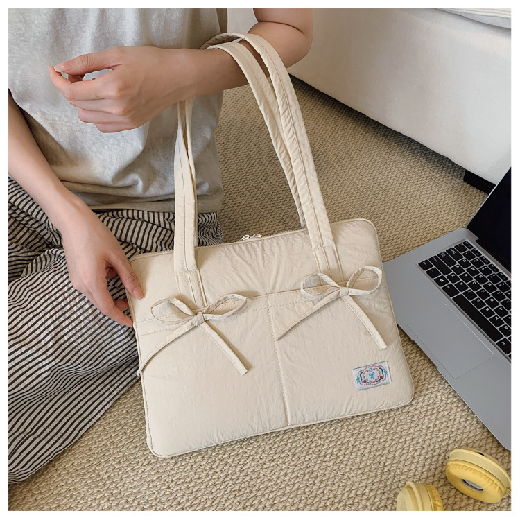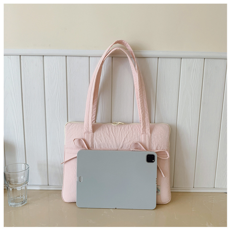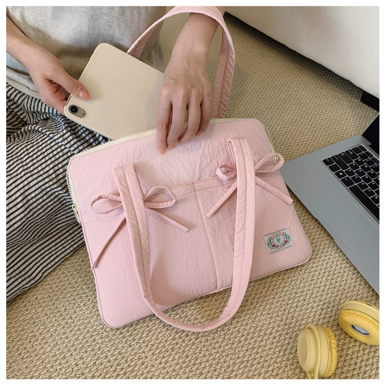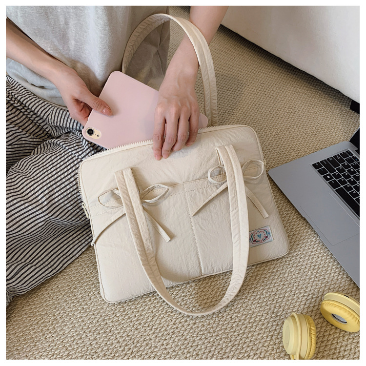 일본과 한국의 작은 신선한 리본 14inch 소녀를 위한 노트북 가방 크림 컬러 다용도 통근 토트 여성용 가방스토어 가기