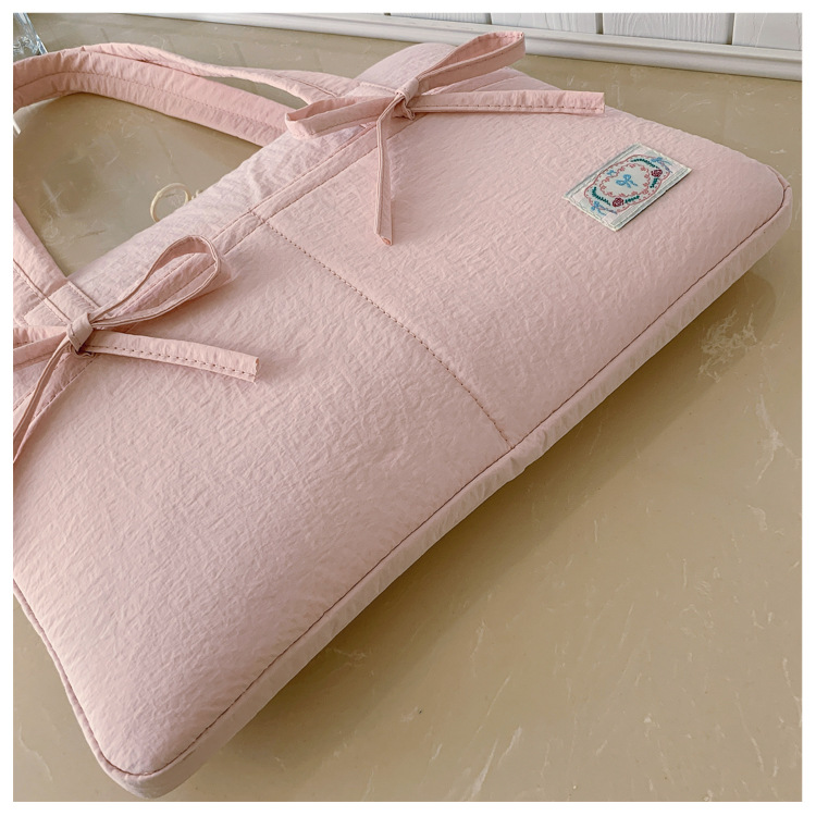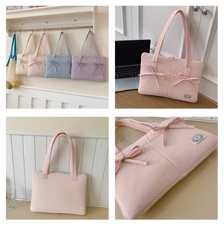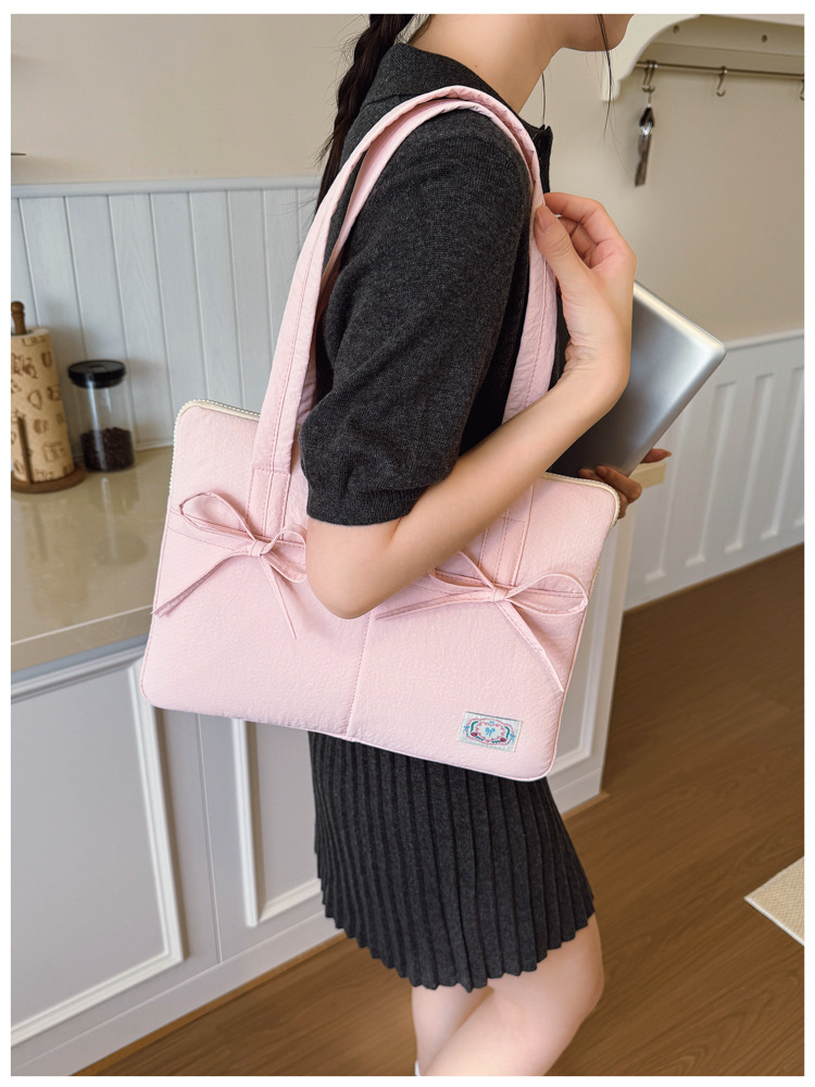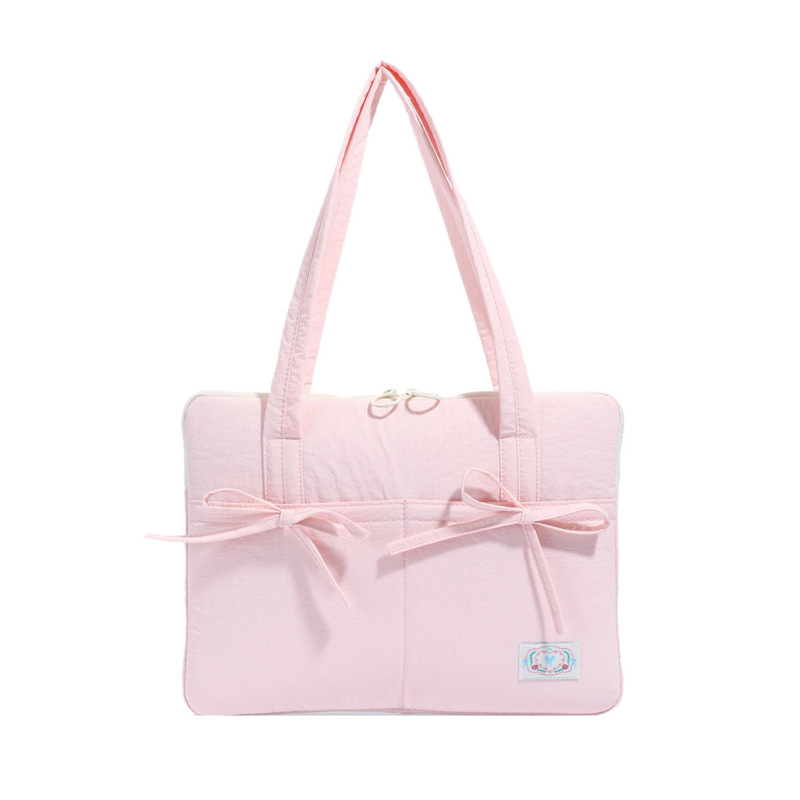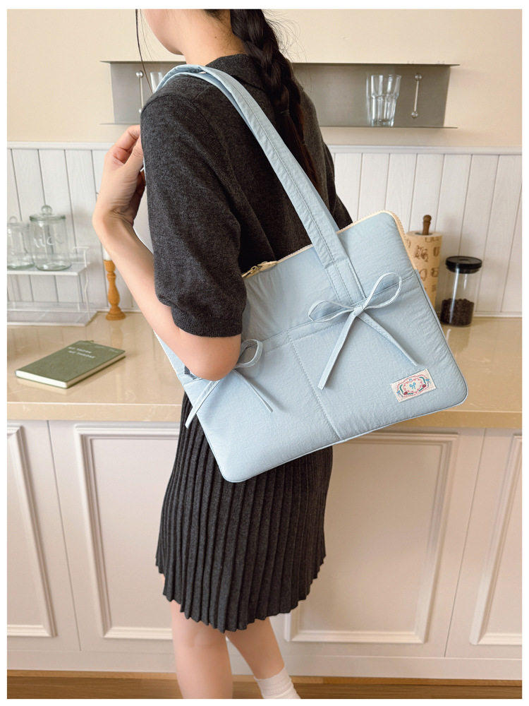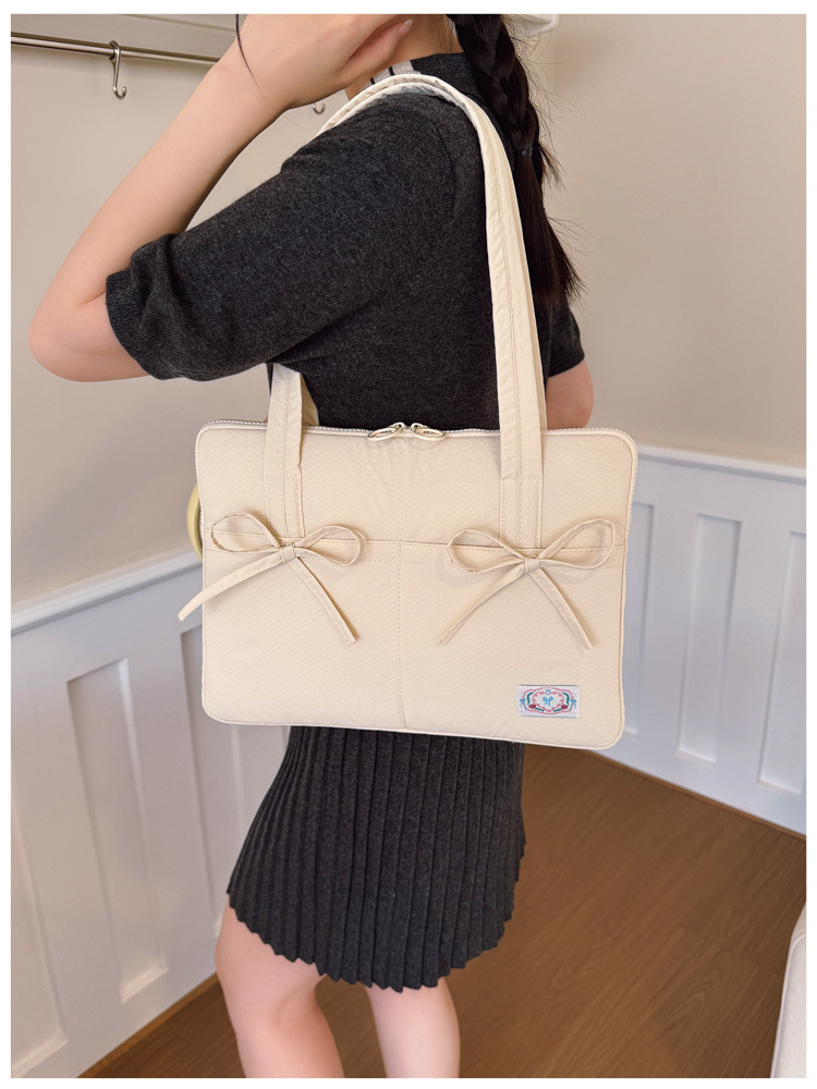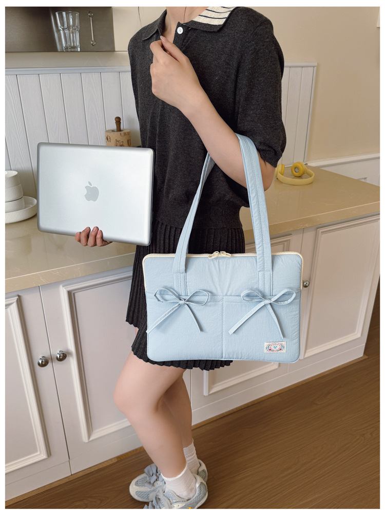 일본과 한국의 작은 신선한 리본 14inch 소녀를 위한 노트북 가방 크림 컬러 다용도 통근 토트 여성용 가방스토어 가기