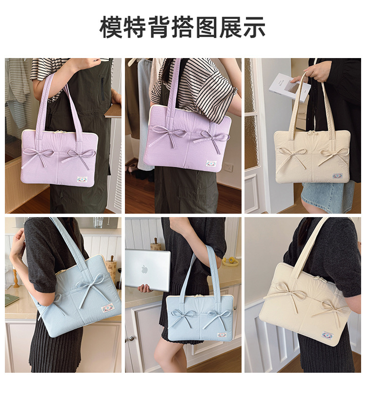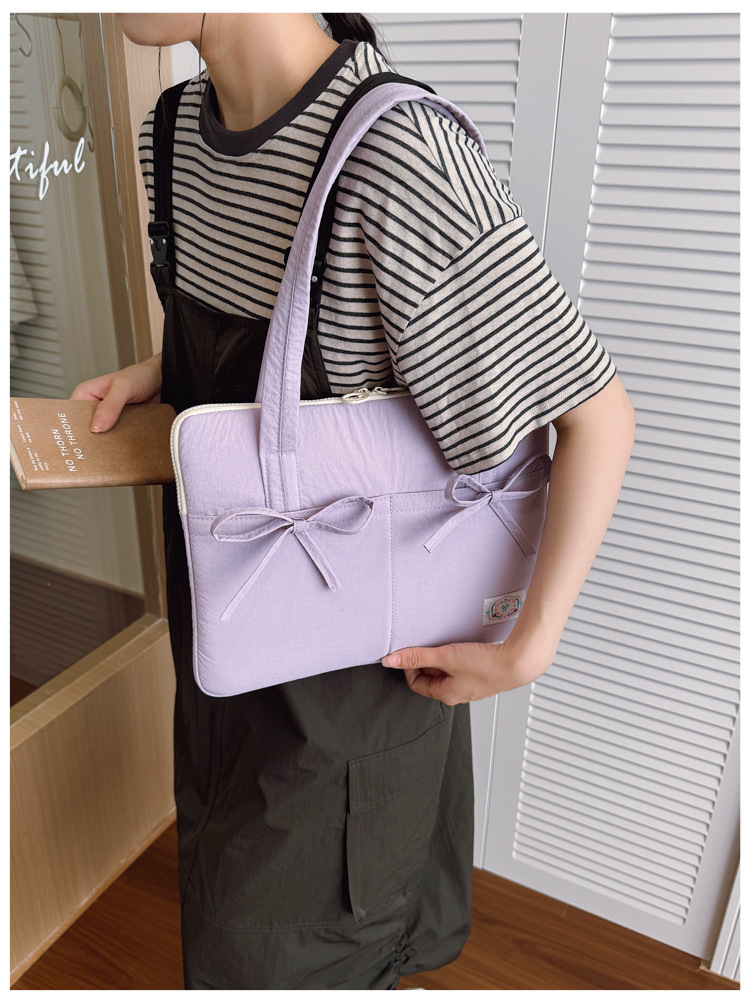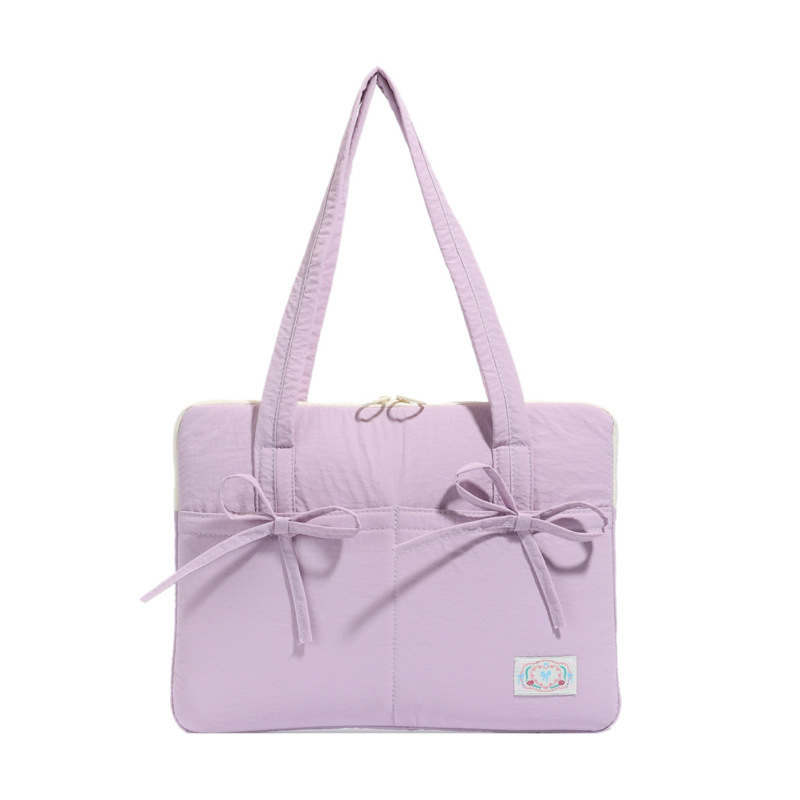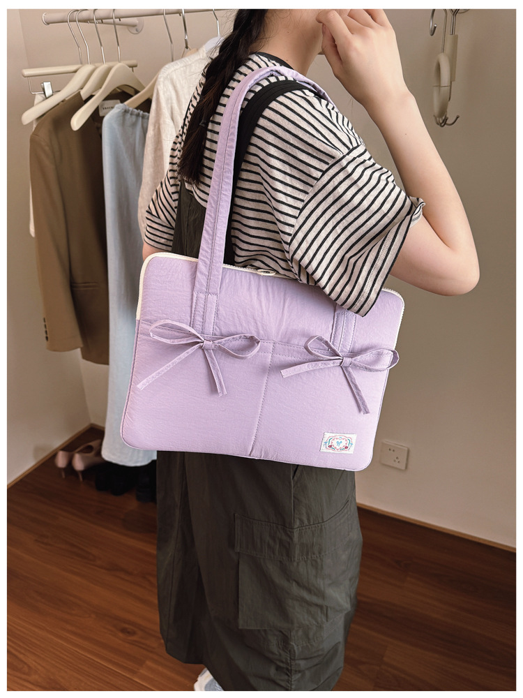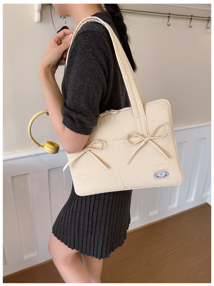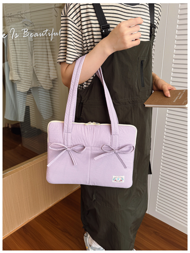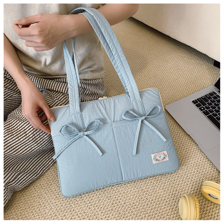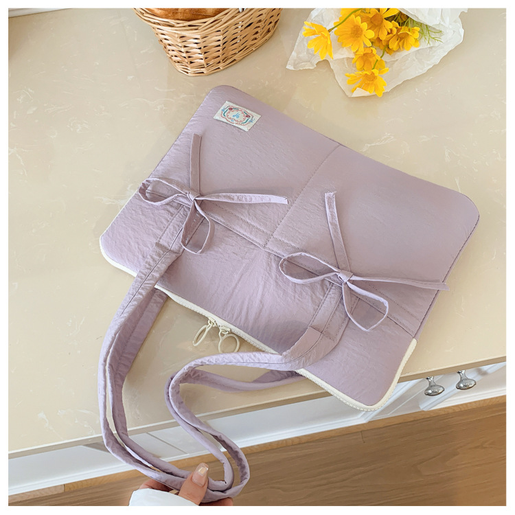 일본과 한국의 작은 신선한 리본 14inch 소녀를 위한 노트북 가방 크림 컬러 다용도 통근 토트 여성용 가방스토어 가기