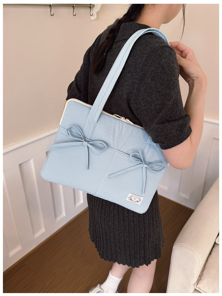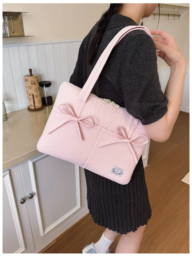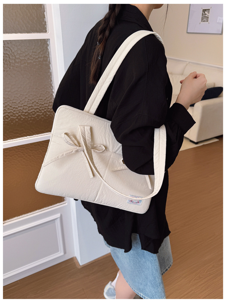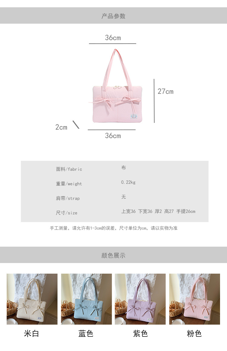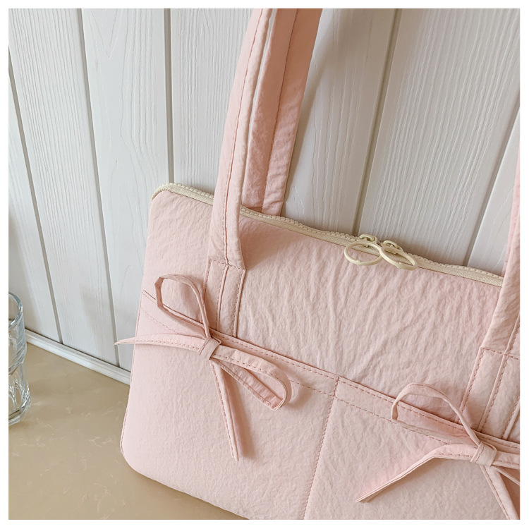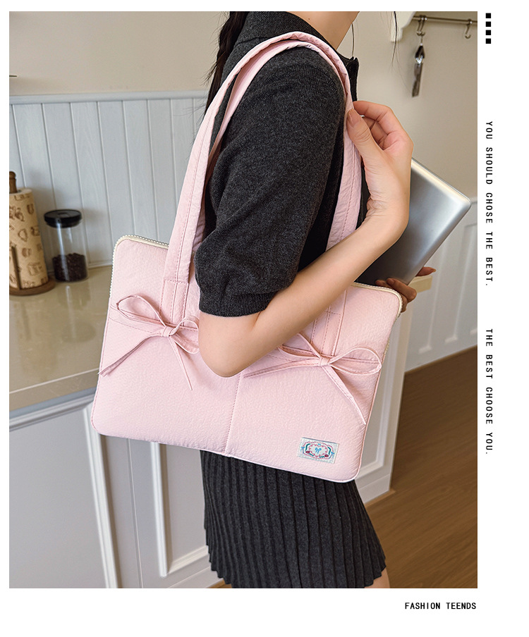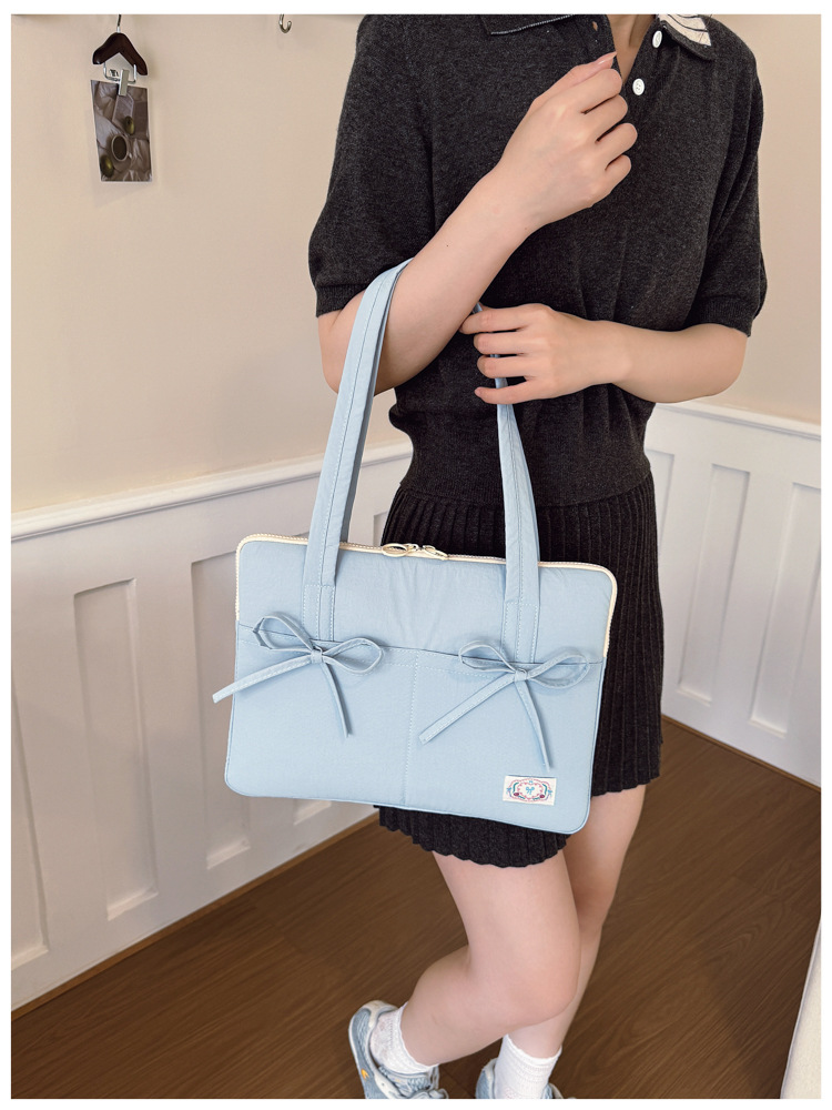 일본과 한국의 작은 신선한 리본 14inch 소녀를 위한 노트북 가방 크림 컬러 다용도 통근 토트 여성용 가방스토어 가기