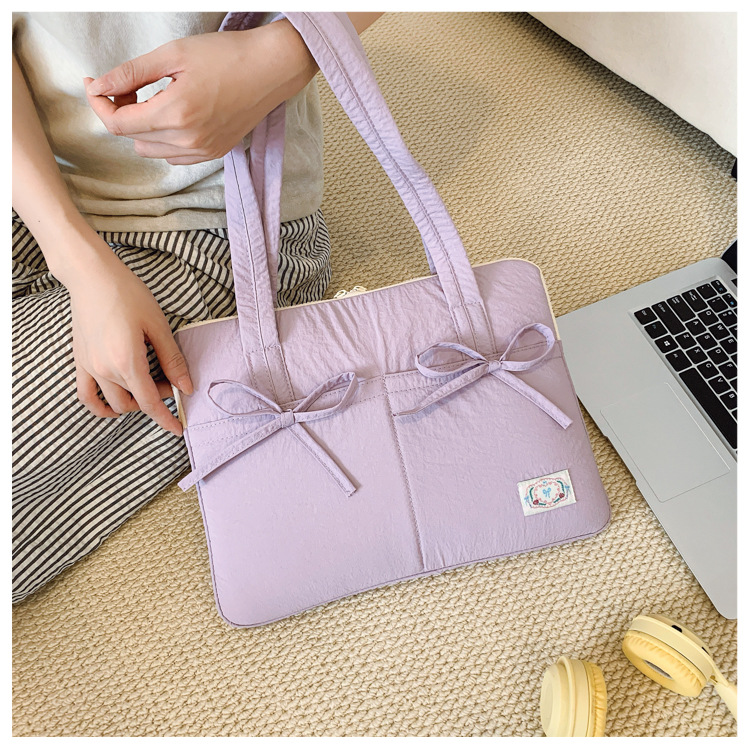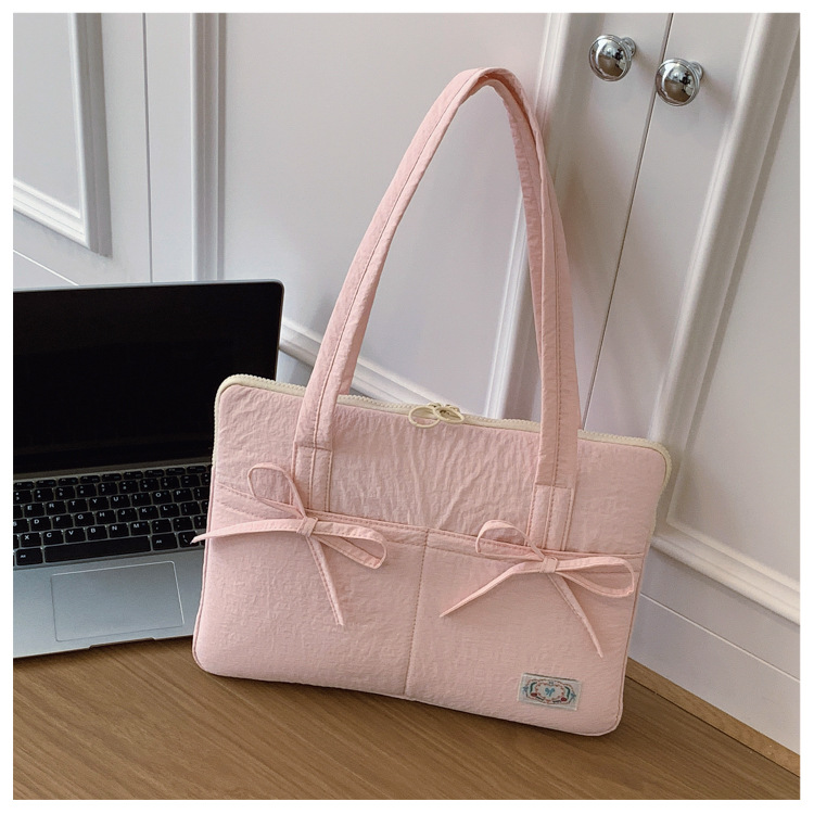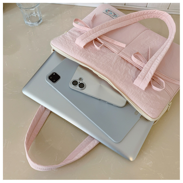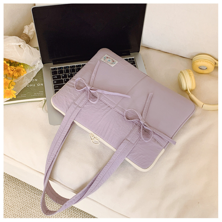 일본과 한국의 작은 신선한 리본 14inch 소녀를 위한 노트북 가방 크림 컬러 다용도 통근 토트 여성용 가방