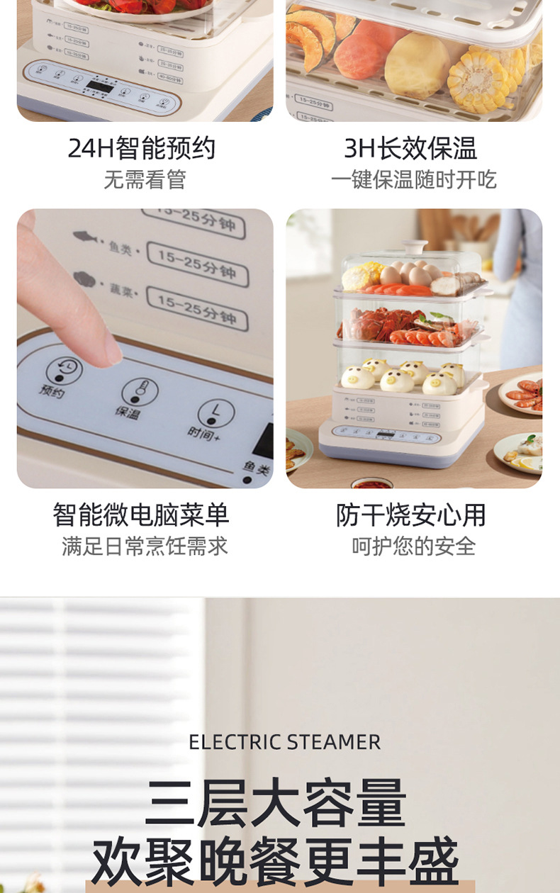 국경 간 지능형 전기 찜통 가정용 대용량 다기능 전기 찜통 에너지 절약 예약 단열 주방 아침 식사 기계