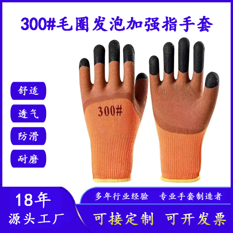 테리폼 플러스 벨벳 플러스 두꺼운 라텍스 300 # 장갑 강화 손가락 점착 노동 보호 장갑 겨울 건설 현장 장갑