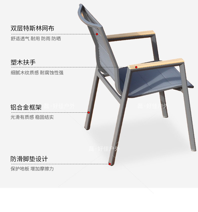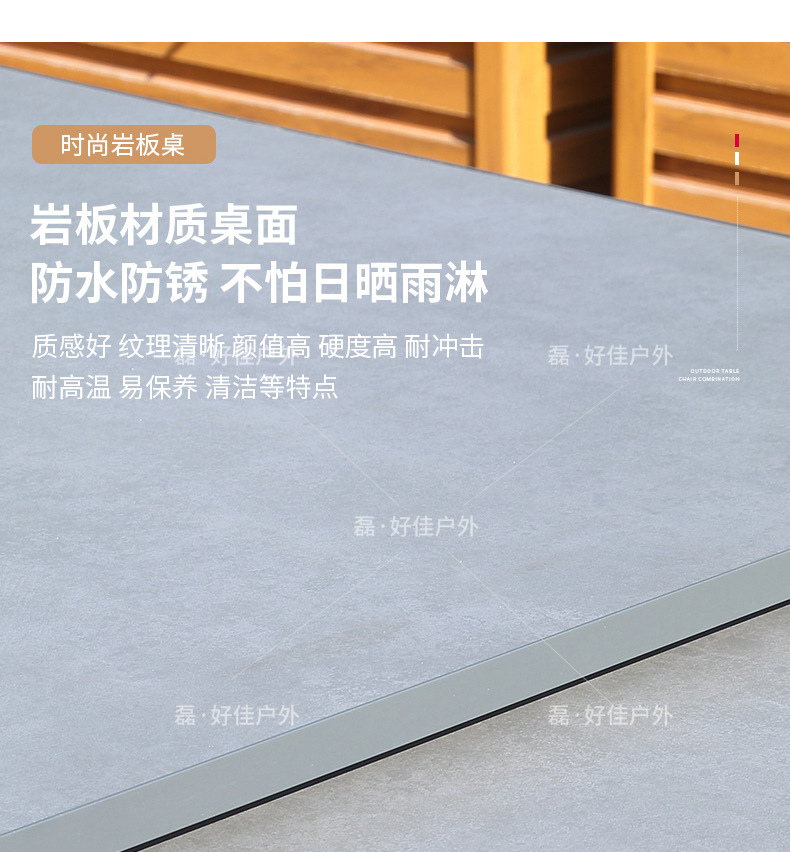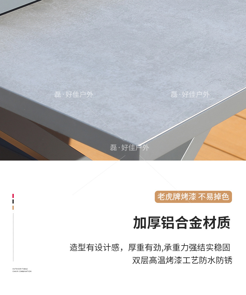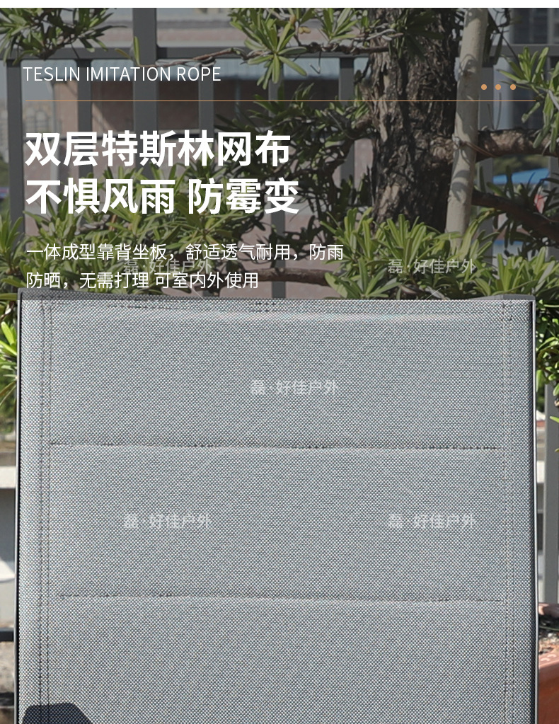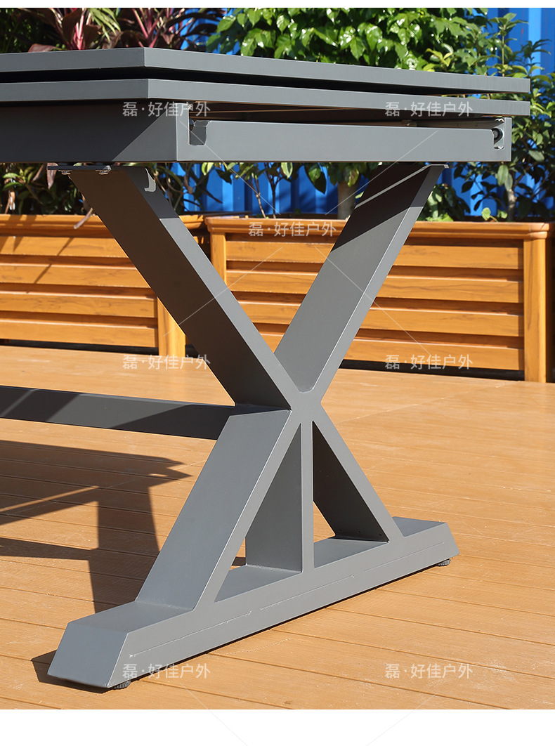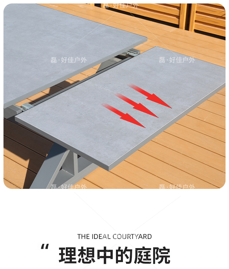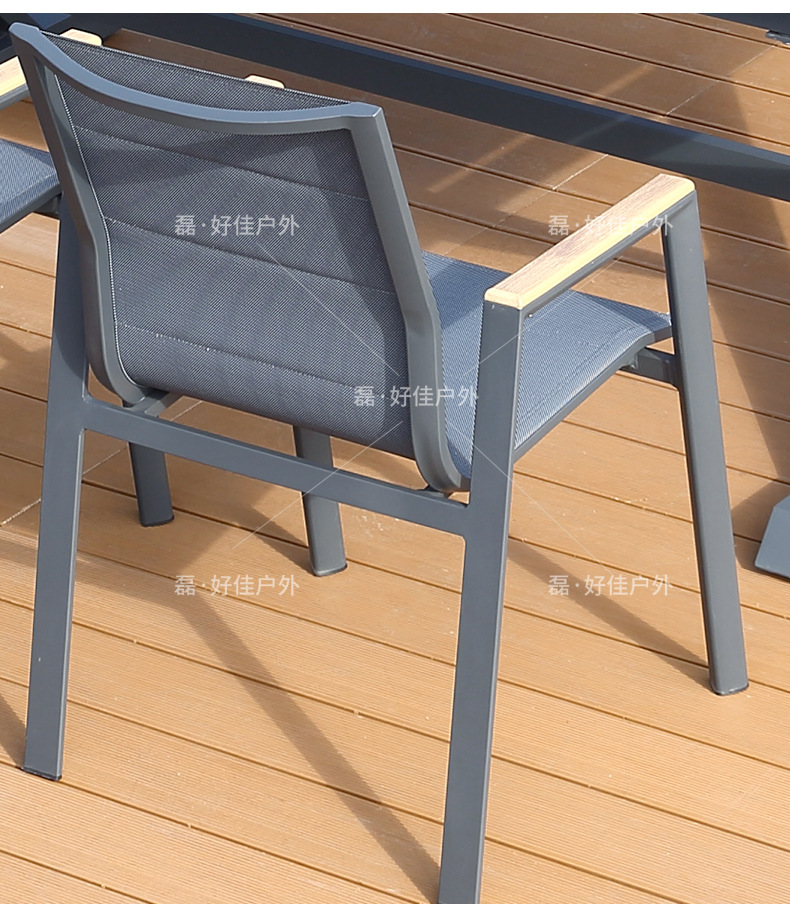 • 6개의 더블 레이어 메쉬 의자 + 220(확장 340) * 90cm 텔레스코픽 록 플레이트 롱 테이블