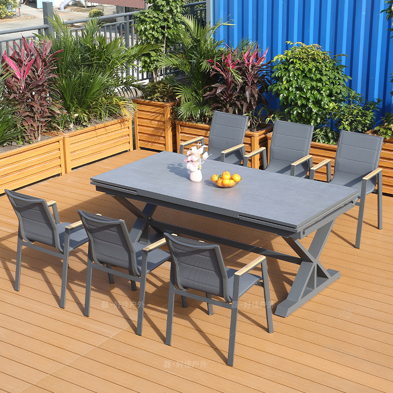 야외 안뜰 테이블과 의자, 빌라 접이식 긴 테이블, 호텔 및 B&B 정원 야외 식탁과 의자 조합 테라스 가구스토어 가기