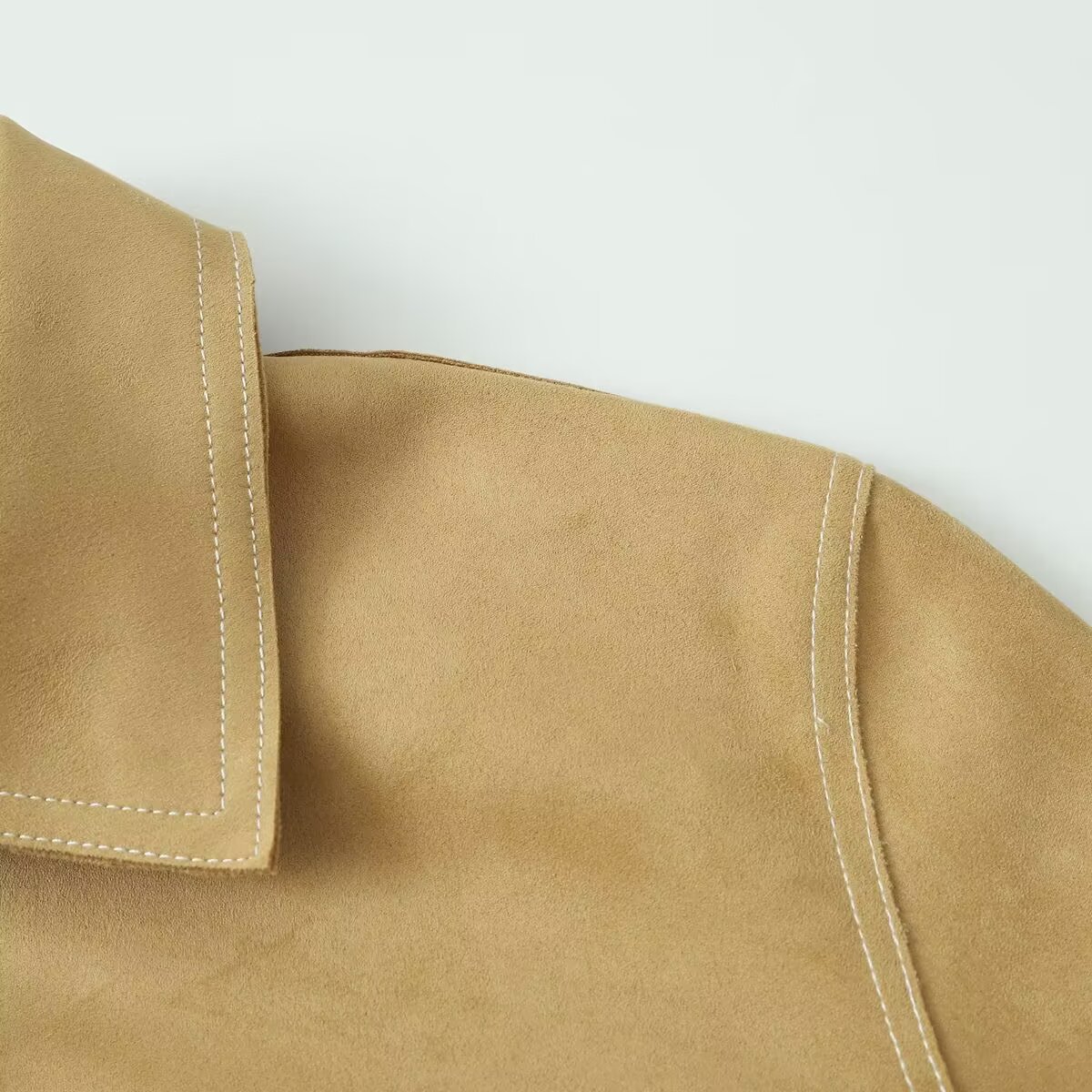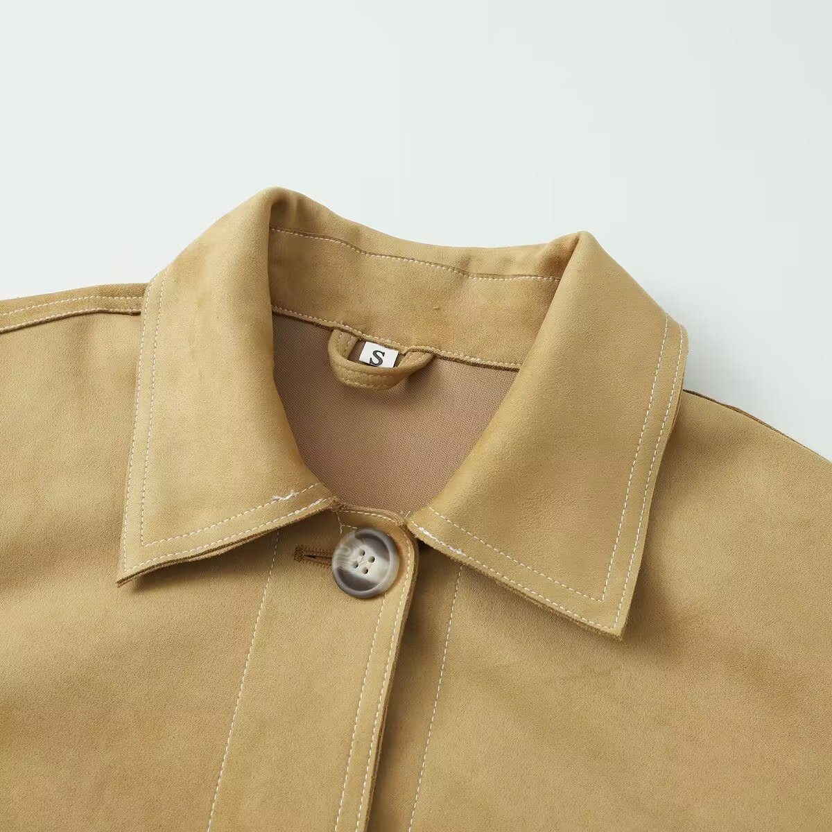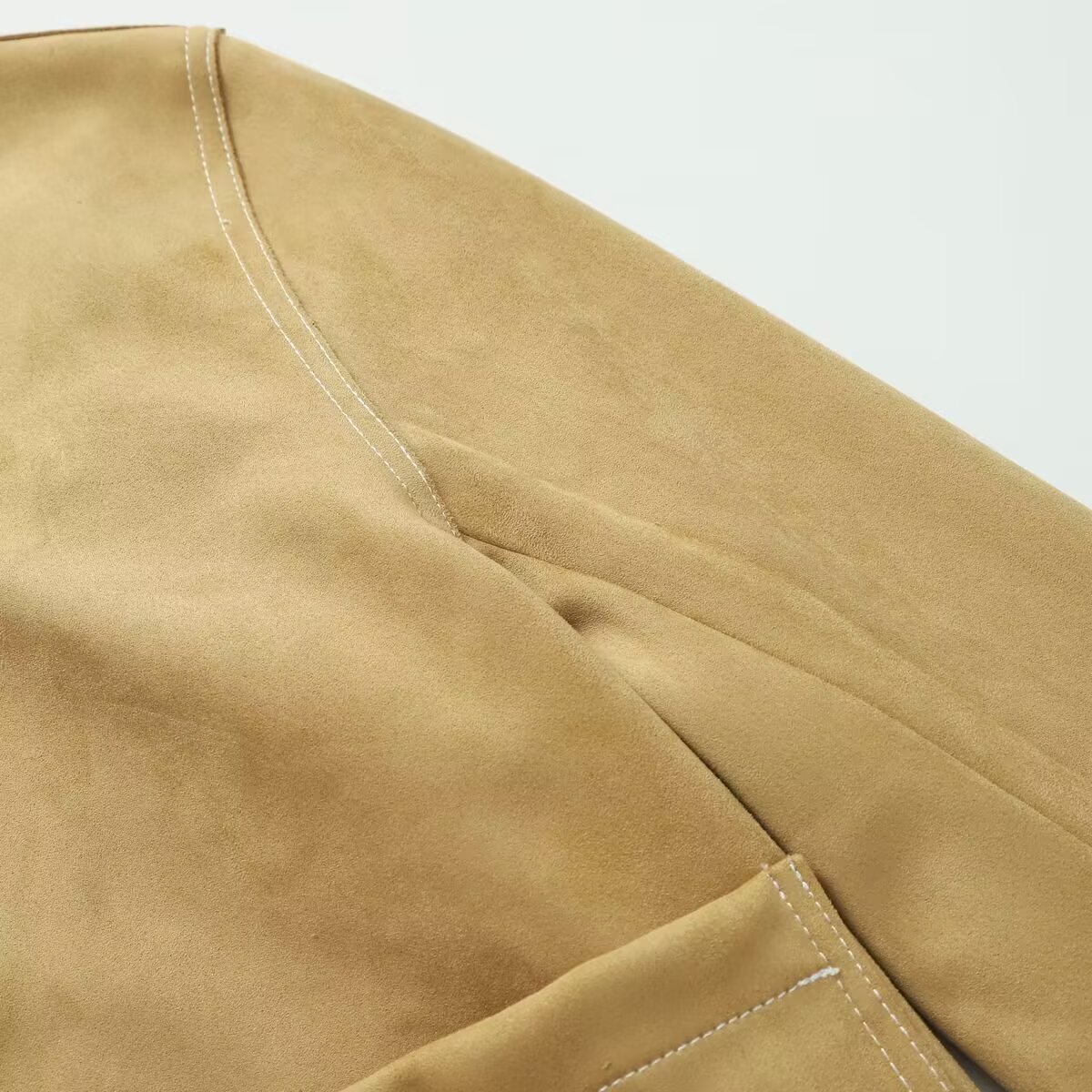 국경 간 공급 2025 새로운 여름 여성 패션 기질 통근 다용도 모조 스웨이드 질감 짧은 재킷
