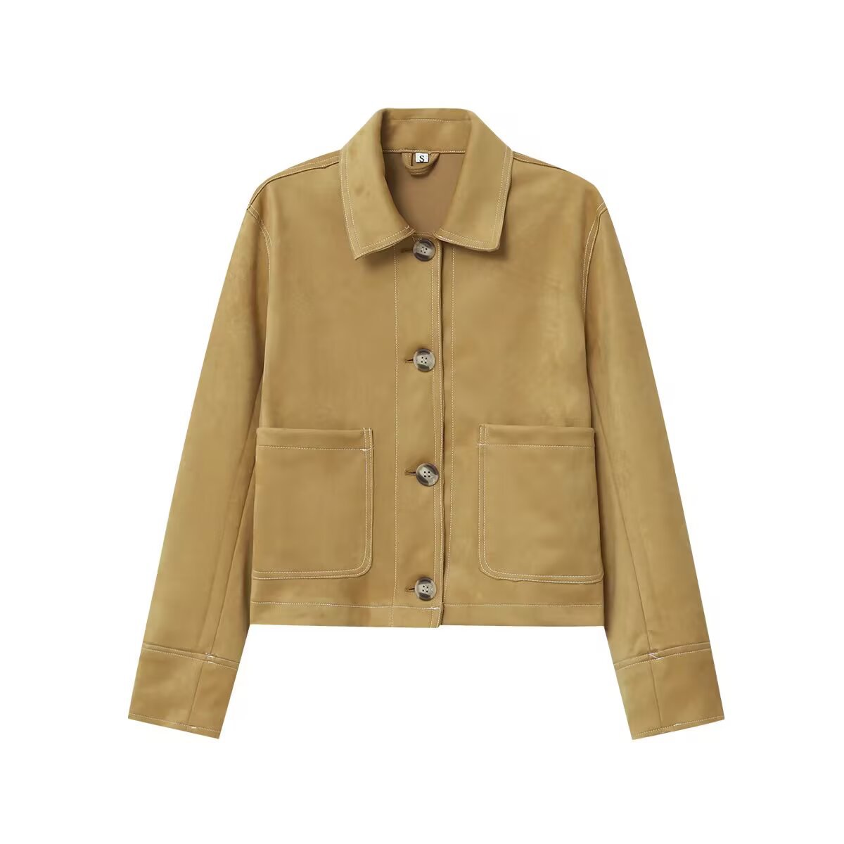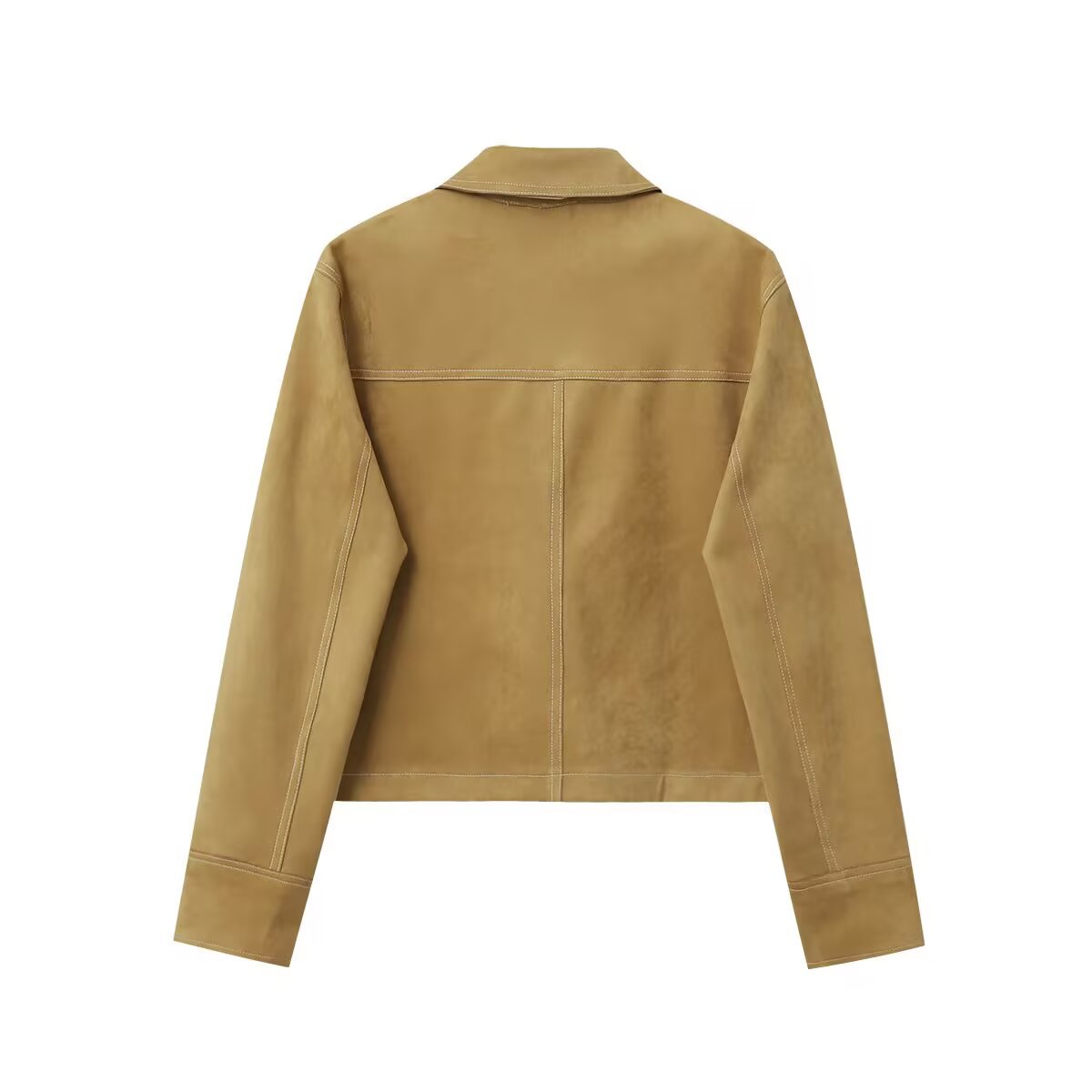 국경 간 공급 2025 새로운 여름 여성 패션 기질 통근 다용도 모조 스웨이드 질감 짧은 재킷스토어 가기
