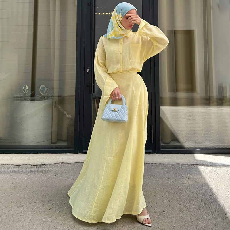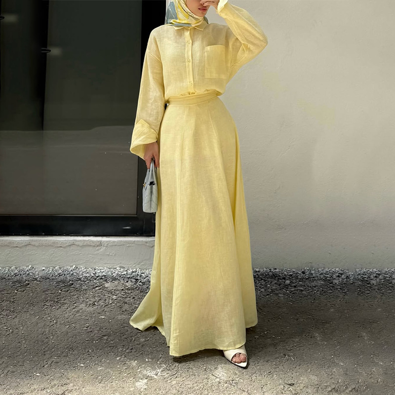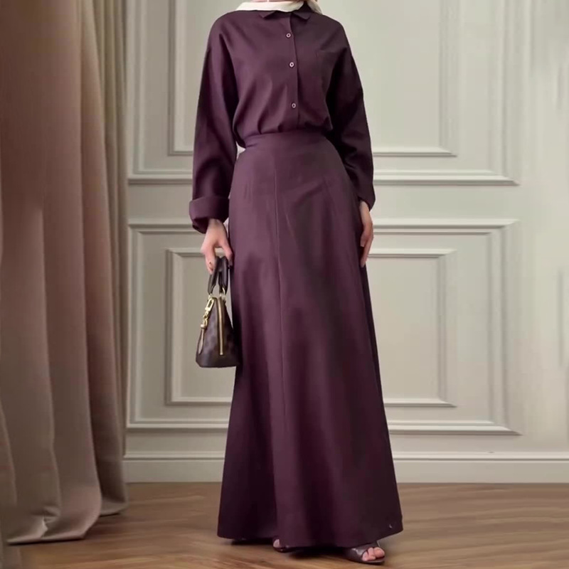 유럽과 미국의 아마존 국경 간 대외 무역 여성 의류 새로운 단색 긴팔 단추 탑 힙 커버 롱 스커트 캐주얼 슈트