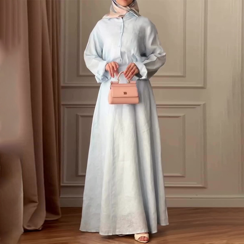 유럽과 미국의 아마존 국경 간 대외 무역 여성 의류 새로운 단색 긴팔 단추 탑 힙 커버 롱 스커트 캐주얼 슈트스토어 가기