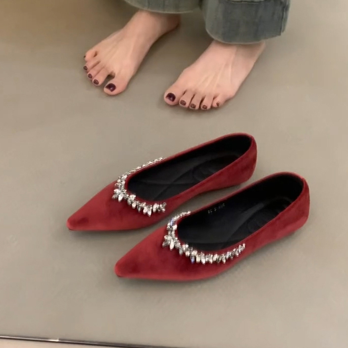 부드러운 가죽 버전 ~ 여성 통근용 뾰족한 라인스톤 플랫슈즈, 슬립온 이브닝 슈즈, 프렌치 펌프스, 웨딩슈즈스토어 가기