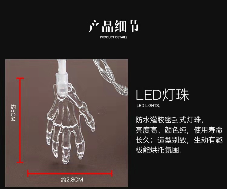 LED 할로윈 유령 손 뼈 해골 작은 빛 장식 램프 유령 축제 유령 손 파티 장식 조명 분위기 빛 문자열스토어 가기