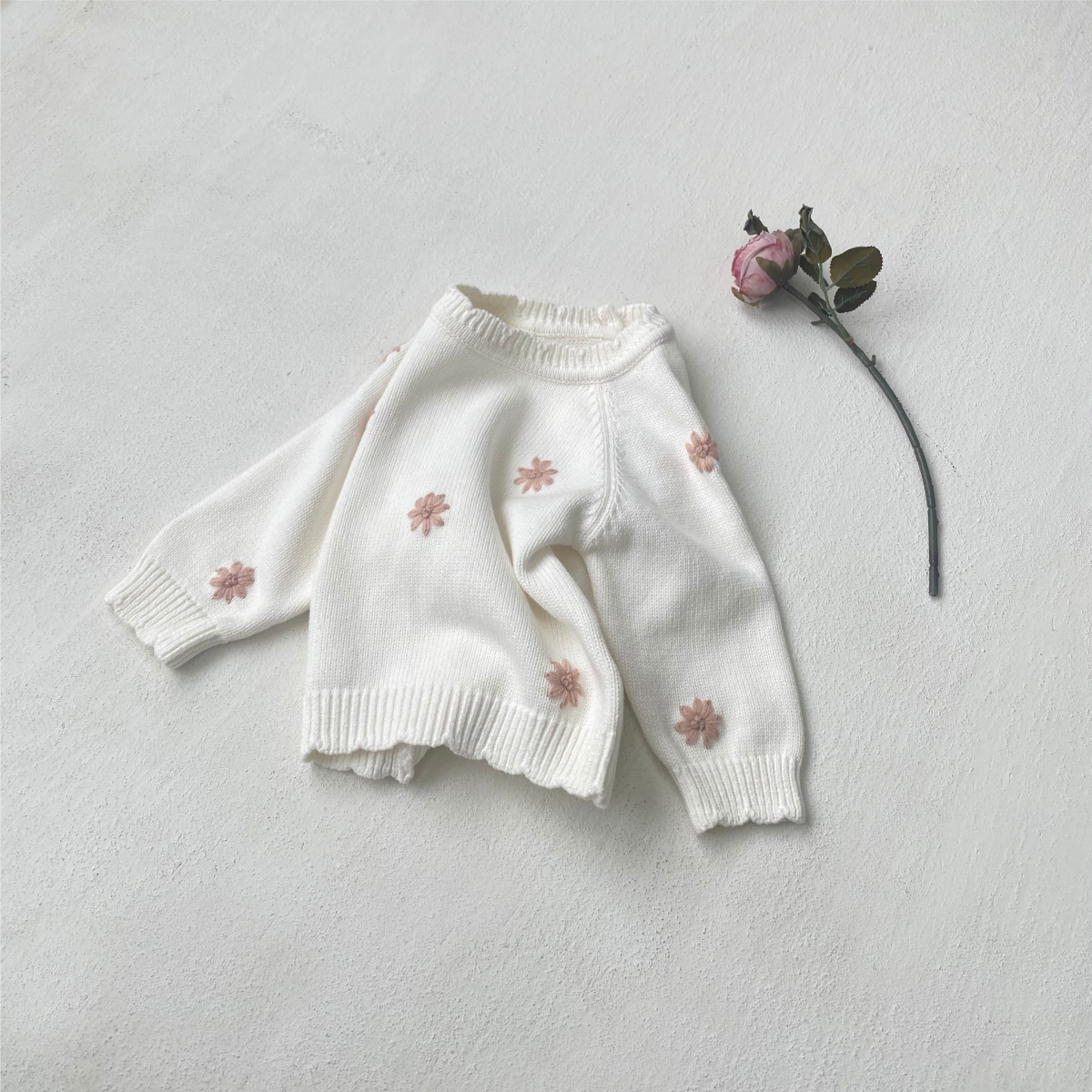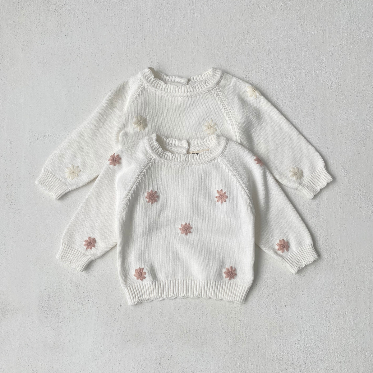 아기 스웨터 가을, 겨울 순수 코튼 아기 신선한 데이지 후크 패턴 스웨터 아기 소녀 스웨터 탑 점프 슈트스토어 가기