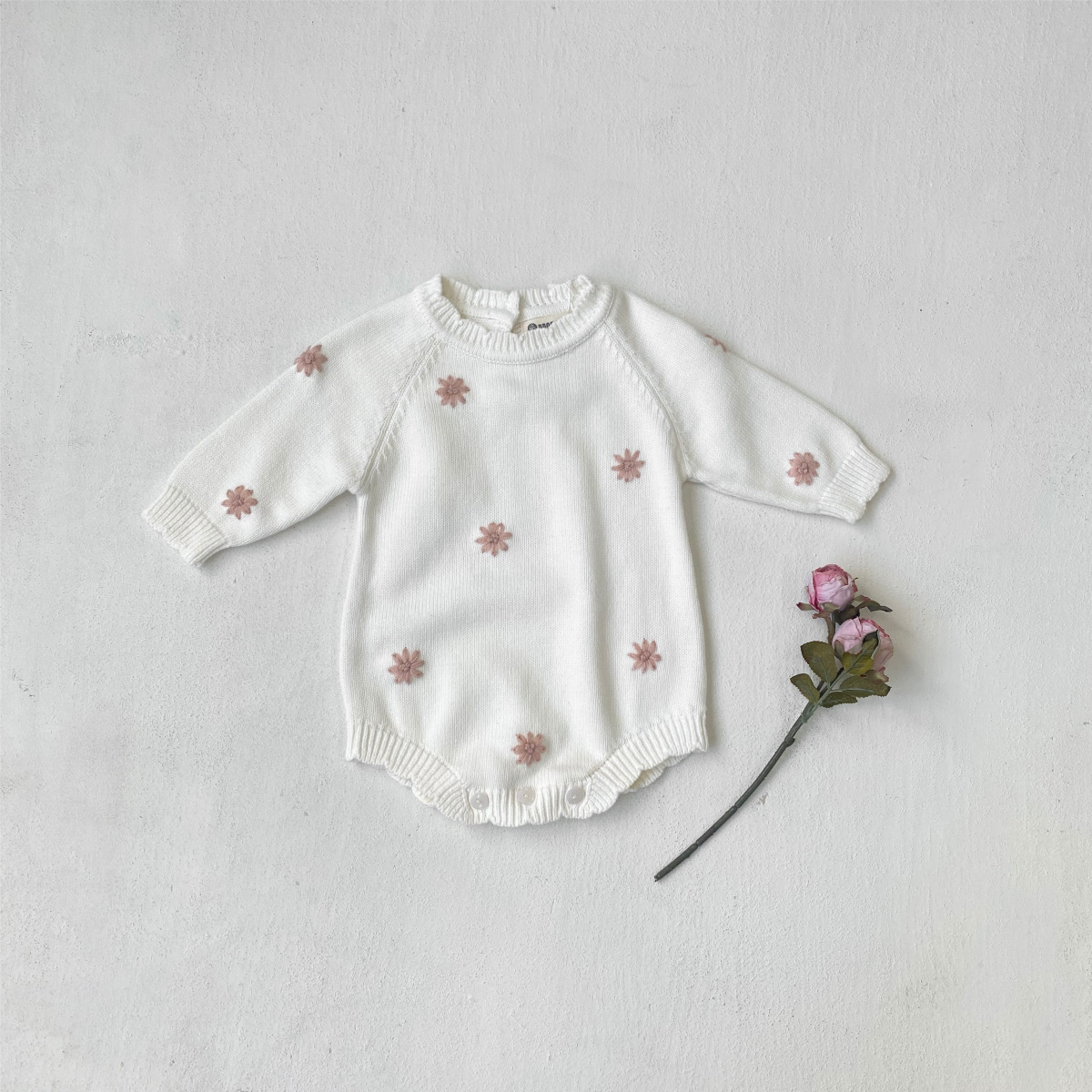 아기 스웨터 가을, 겨울 순수 코튼 아기 신선한 데이지 후크 패턴 스웨터 아기 소녀 스웨터 탑 점프 슈트