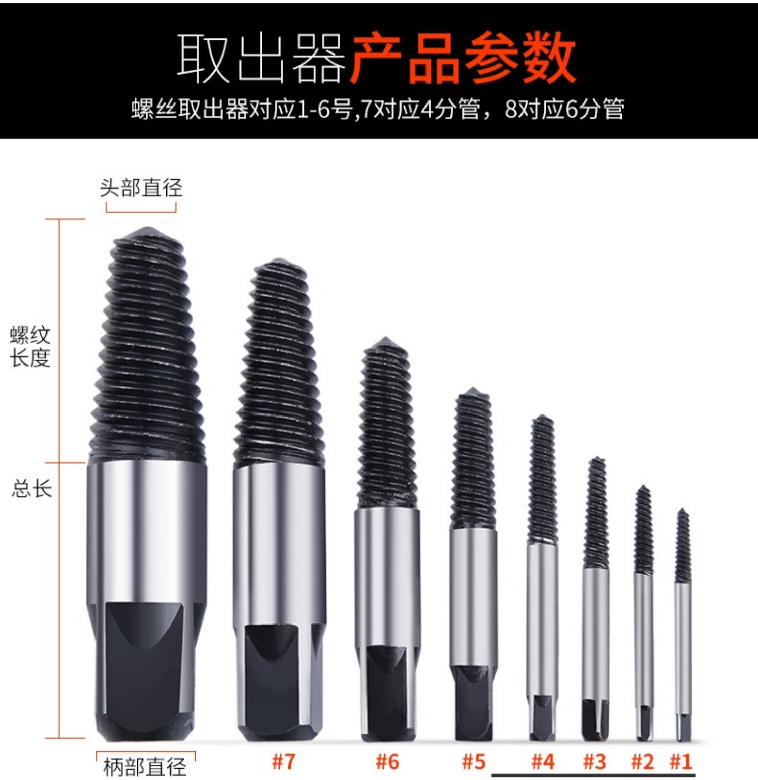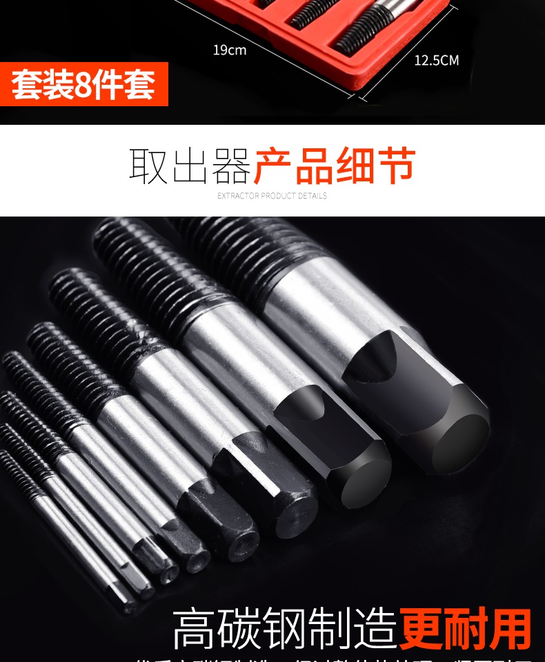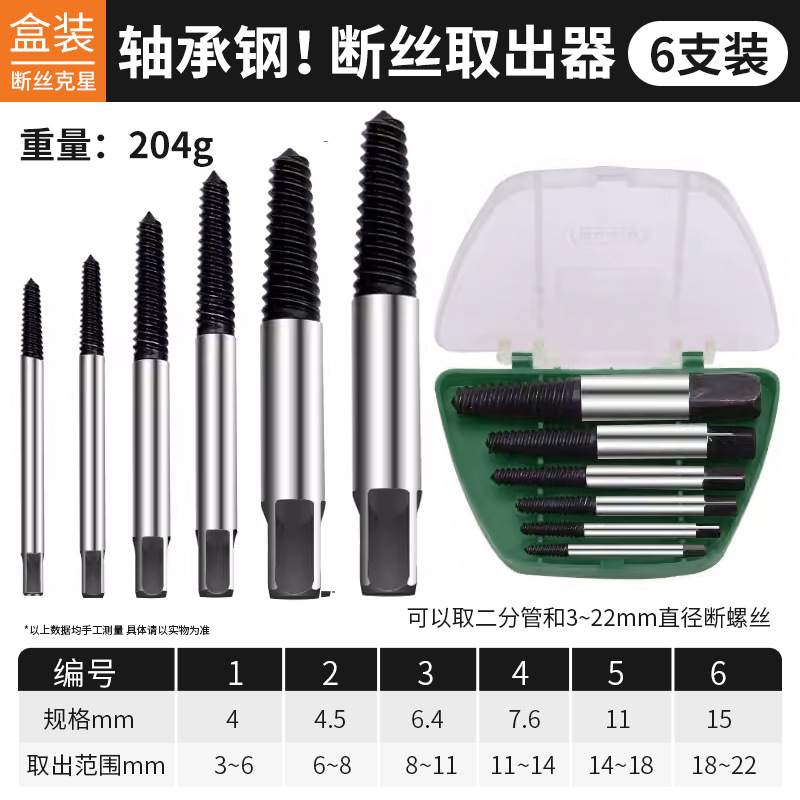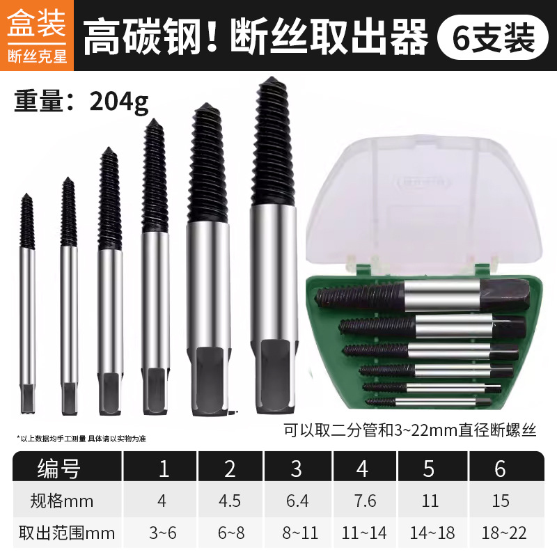 • 고탄소강 6피스 추출기 세트 [직경 3-22mm 부러진 나사에 적합] ♜ ♜