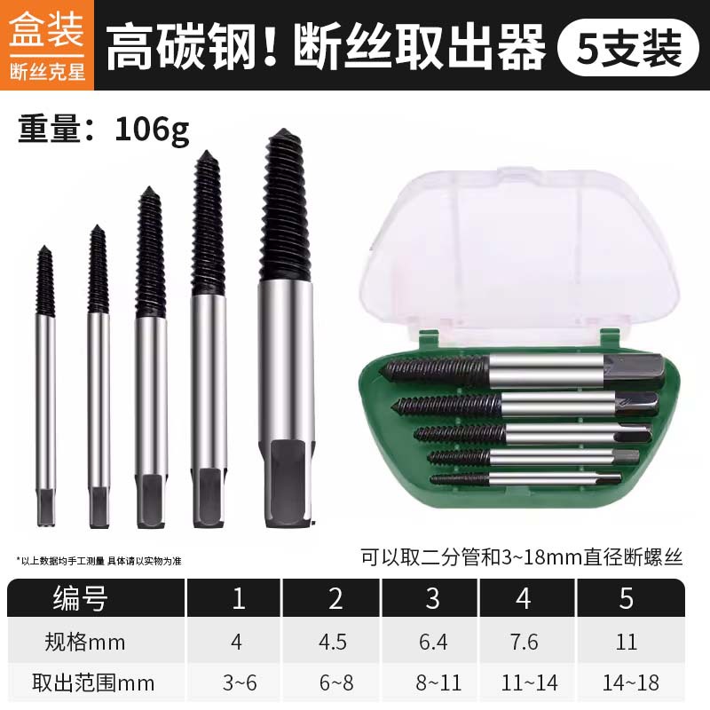 • 고탄소강 5피스 추출기 세트 [직경 3-18mm 부러진 나사에 적합] ♜ ♜