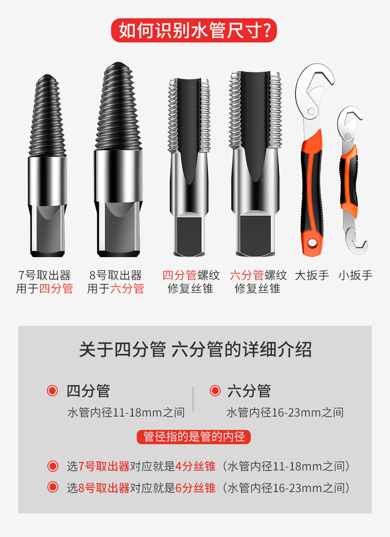 • 4/6 파이프 범용 더블 헤드 추출기 + 4 파이프 수리 장치 ♜ ♜