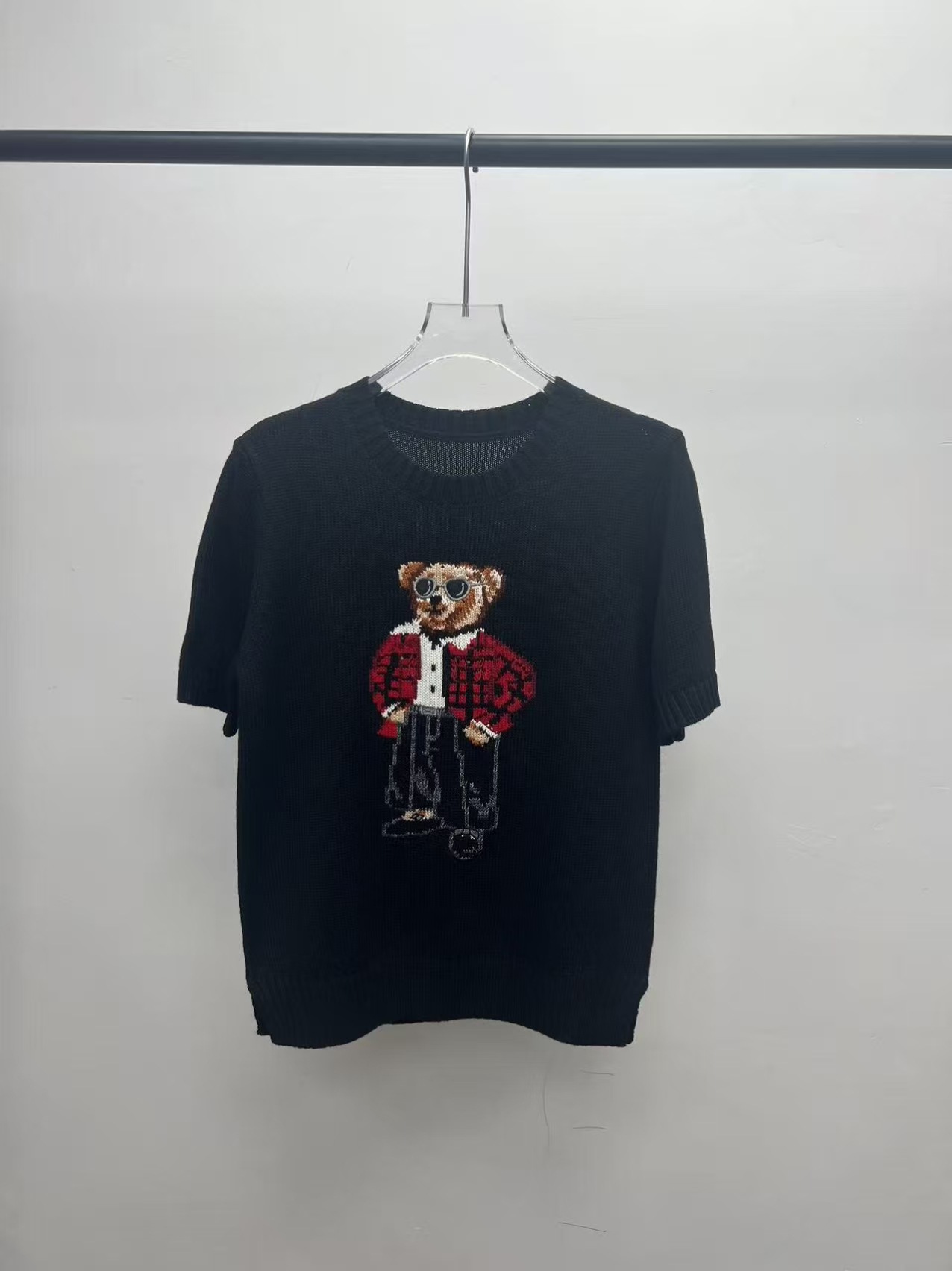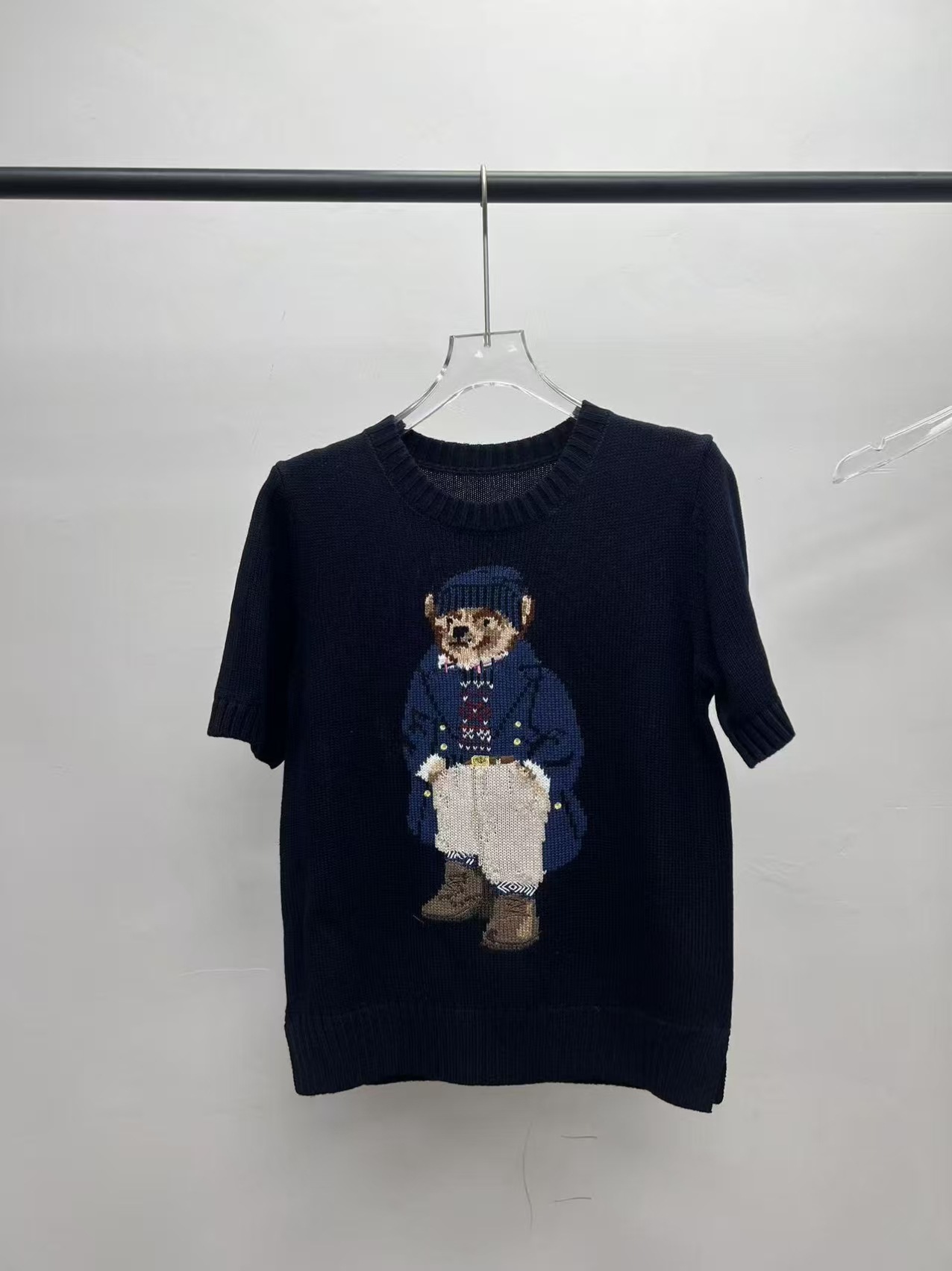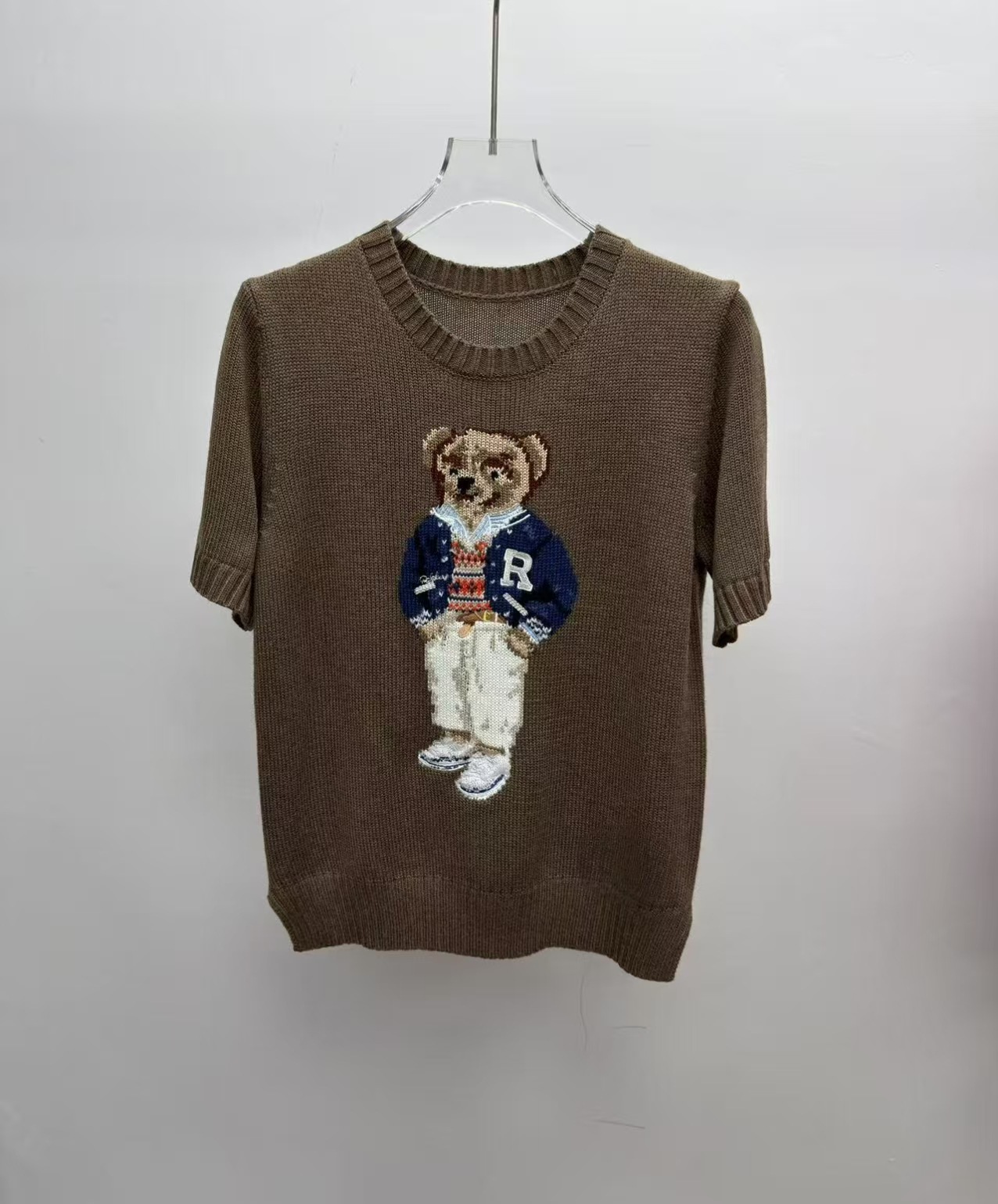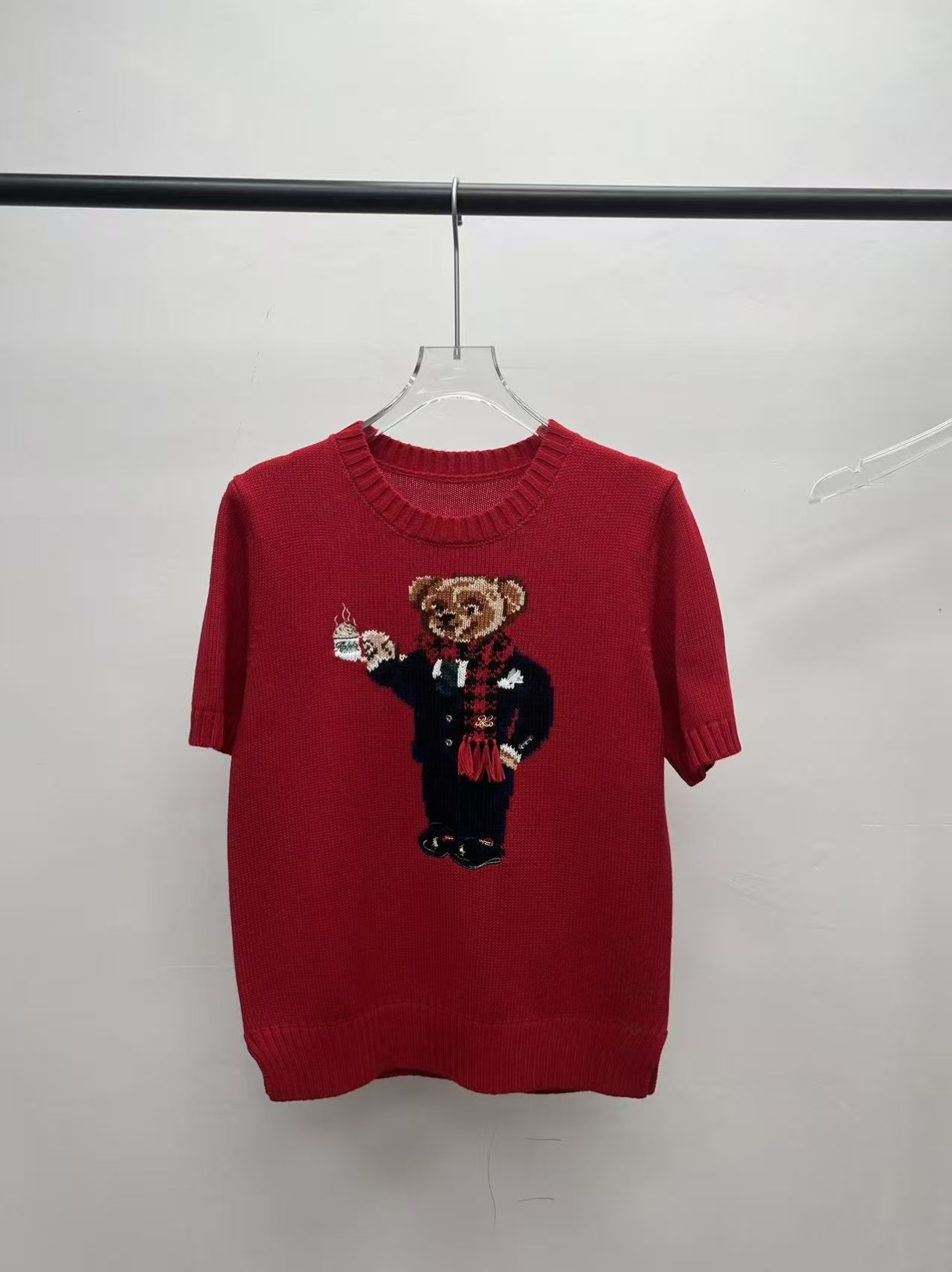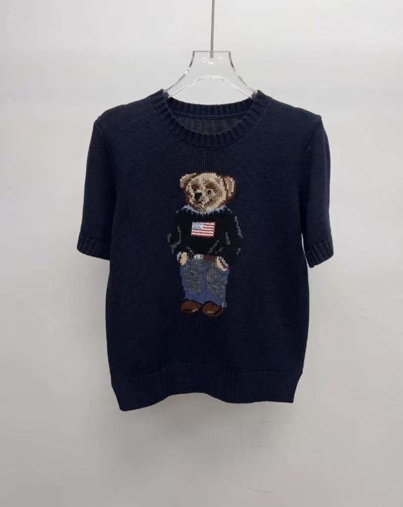 2025년 R.L 가을 겨울 신상품 모직 혼방 만화 곰 라운드넥 대학 스타일 젊어보이는 다용도 스웨터 여성 반팔 티셔츠스토어 가기