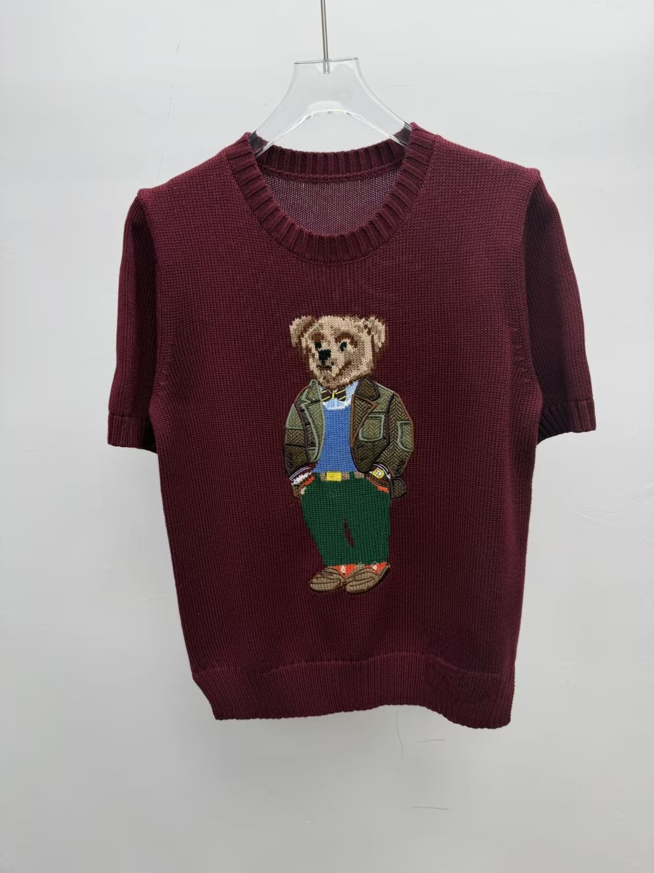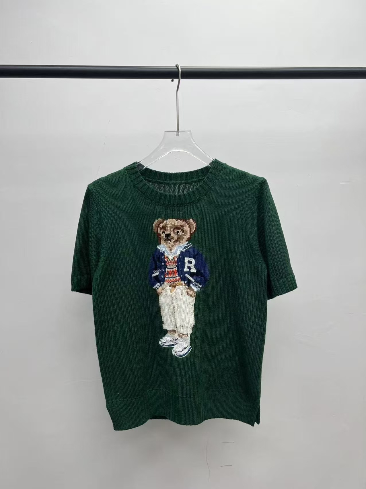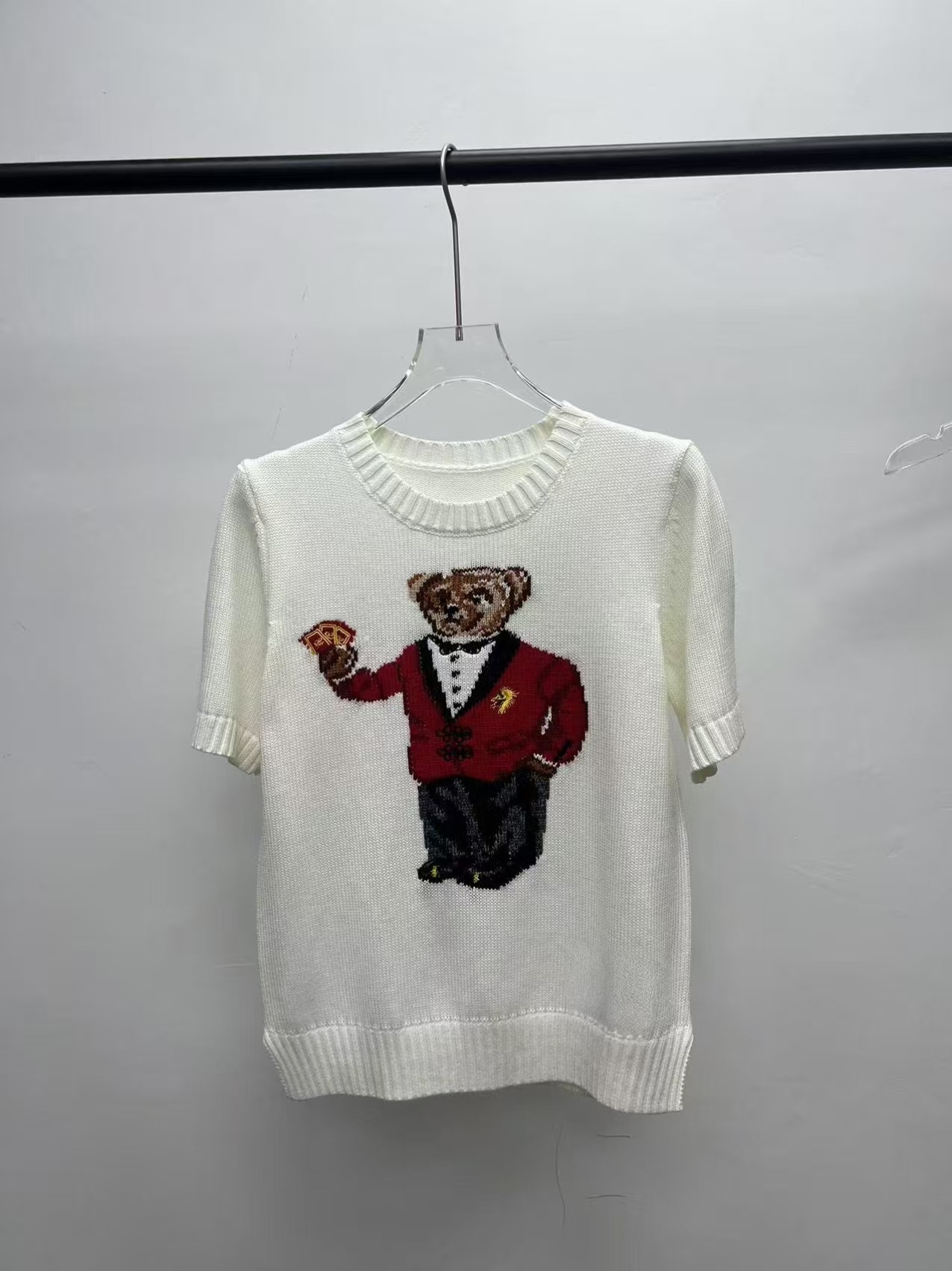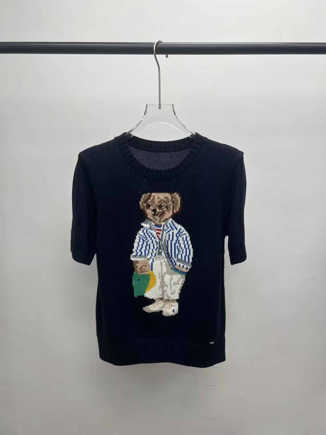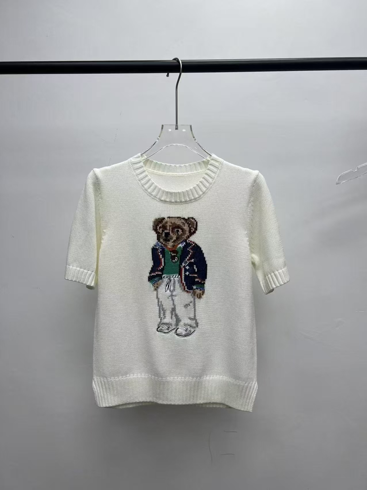 2025년 R.L 가을 겨울 신상품 모직 혼방 만화 곰 라운드넥 대학 스타일 젊어보이는 다용도 스웨터 여성 반팔 티셔츠스토어 가기