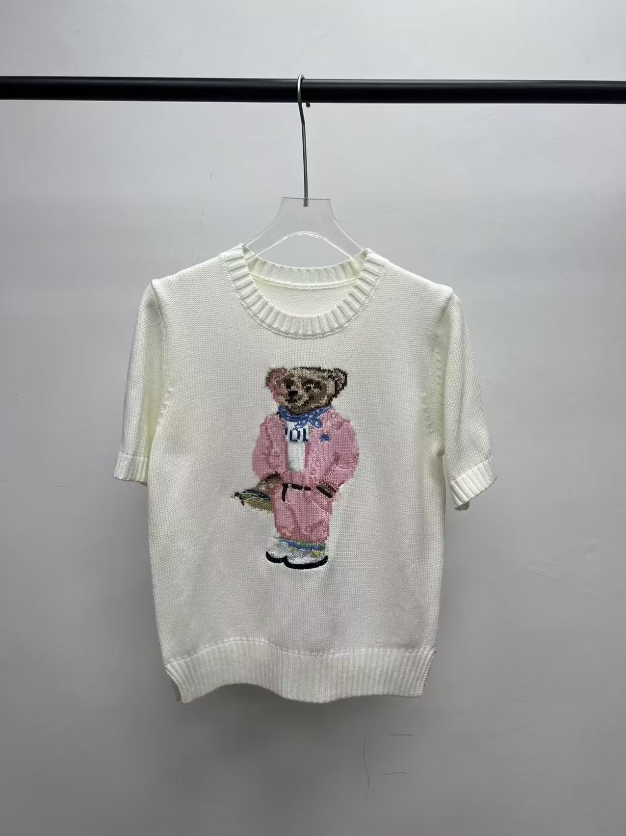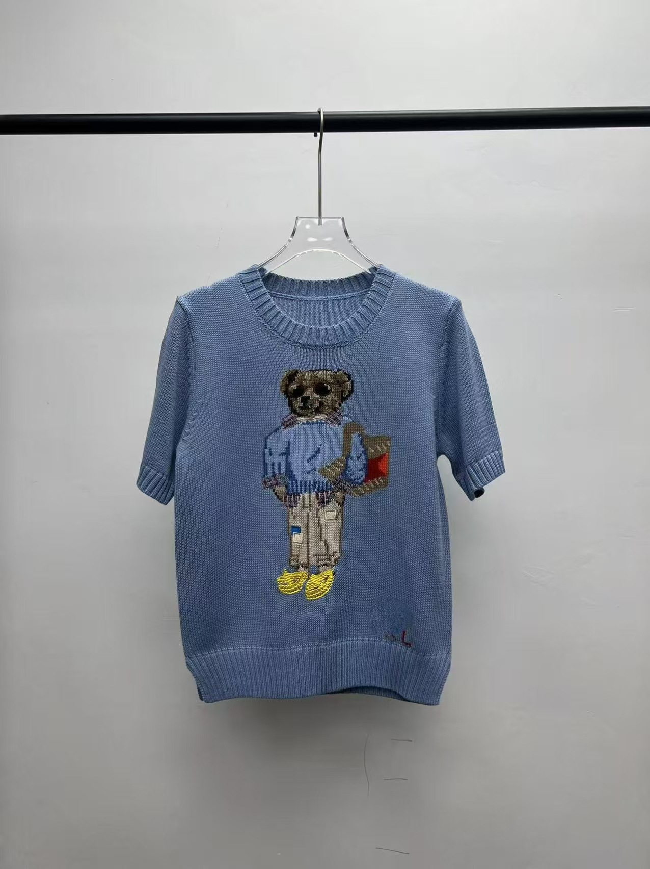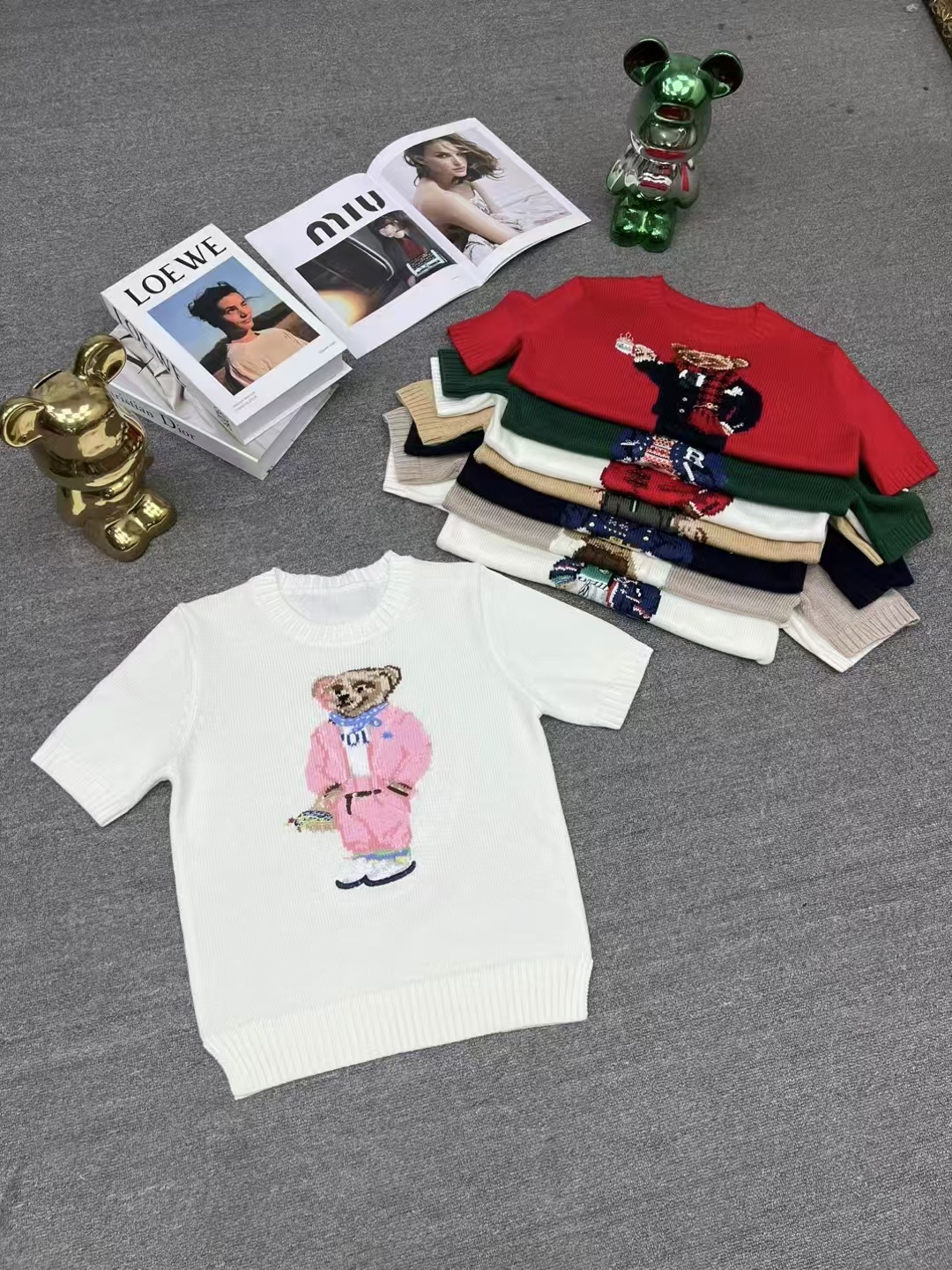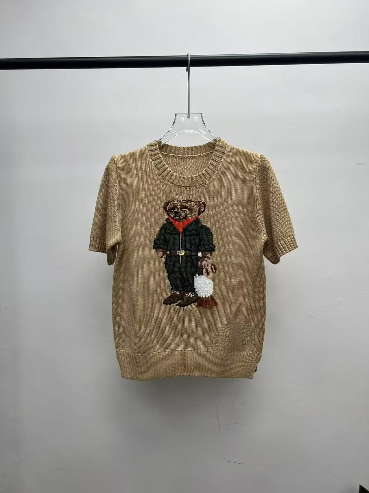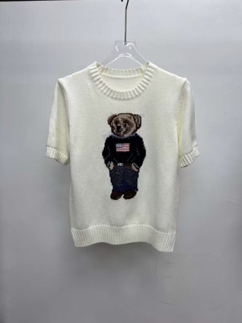 2025년 R.L 가을 겨울 신상품 모직 혼방 만화 곰 라운드넥 대학 스타일 젊어보이는 다용도 스웨터 여성 반팔 티셔츠스토어 가기