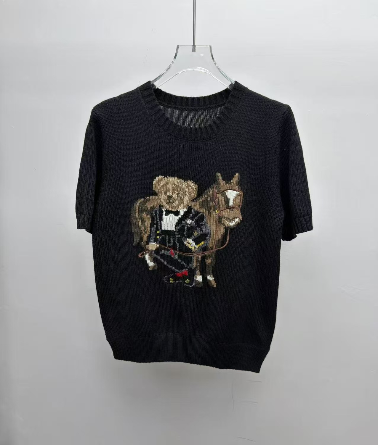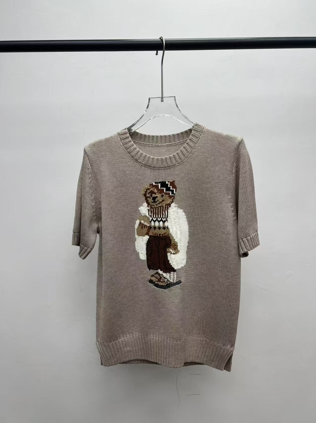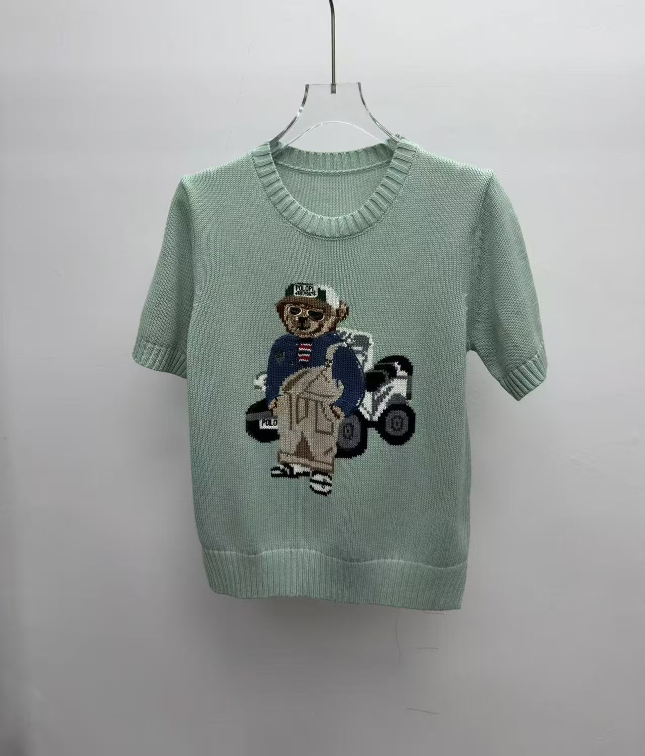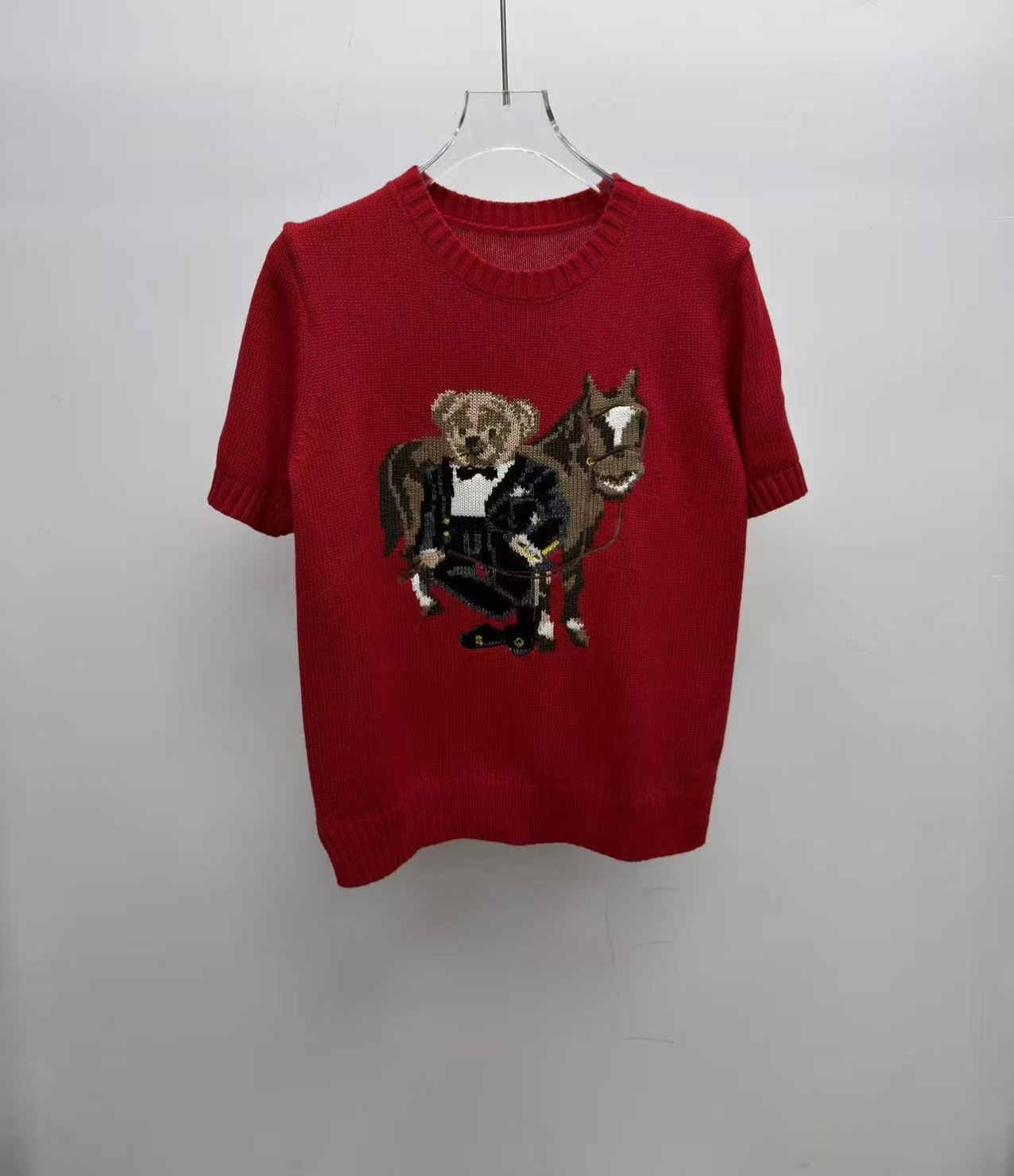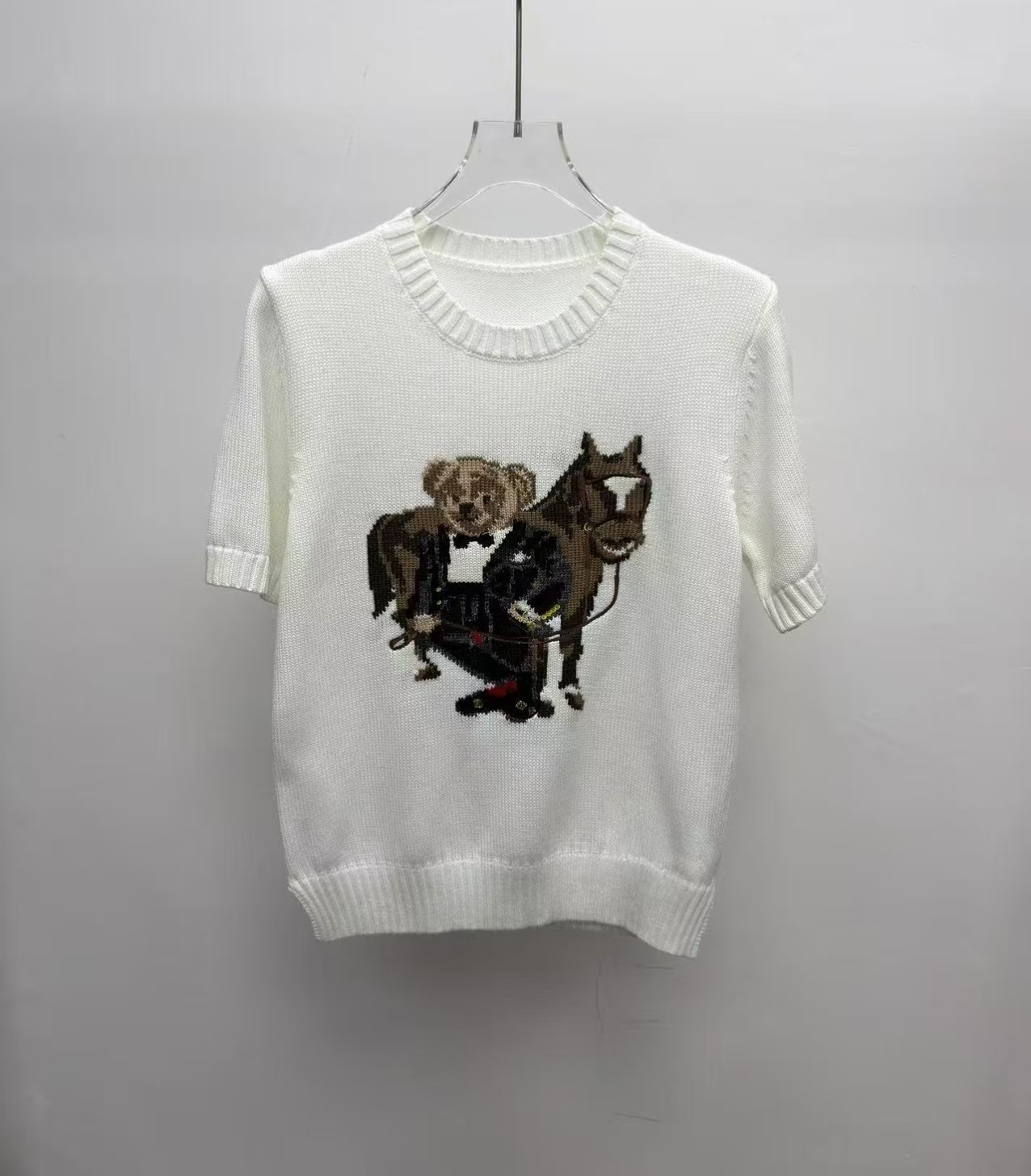 2025년 R.L 가을 겨울 신상품 모직 혼방 만화 곰 라운드넥 대학 스타일 젊어보이는 다용도 스웨터 여성 반팔 티셔츠스토어 가기