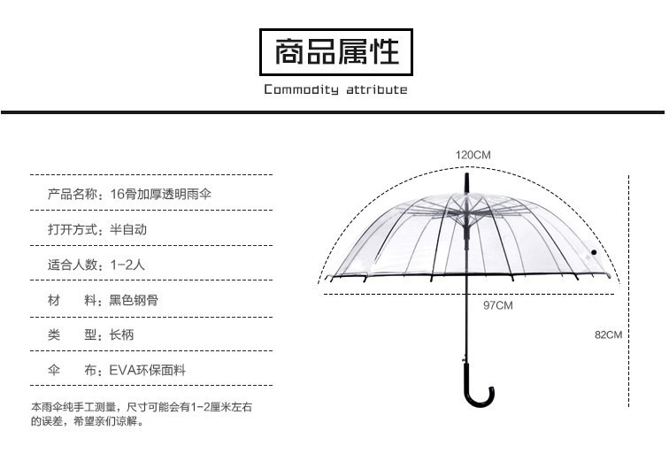 • YY8066 투명 흰색 우산 16갈비 특대형 [검은색 테두리]