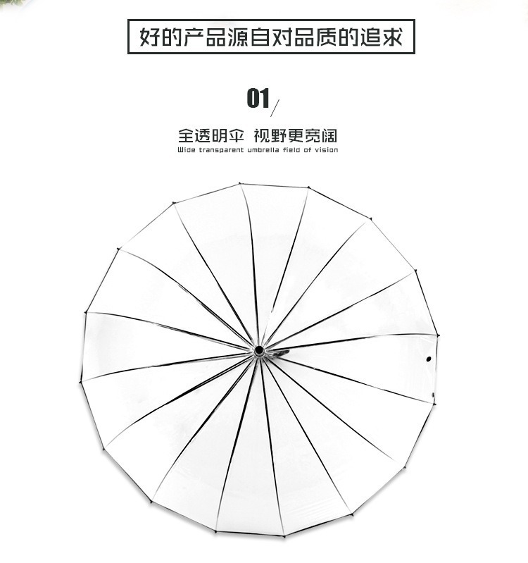 16 뼈 투명 우산 일본 문학과 예술 작은 신선한 긴 손잡이 우산 크리 에이 티브 남성과 여성 커플 우산 두꺼운 우산 도매스토어 가기
