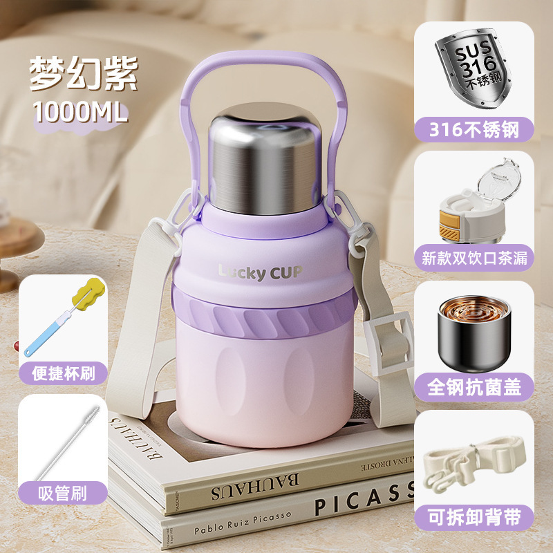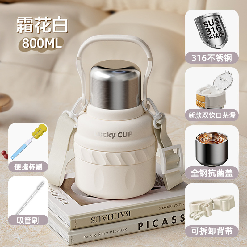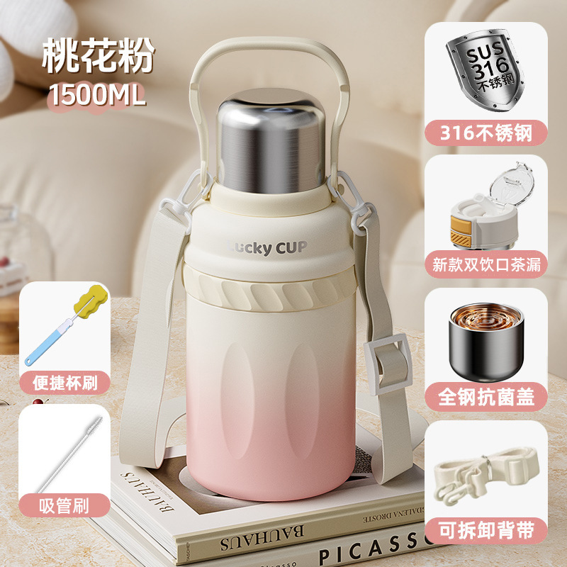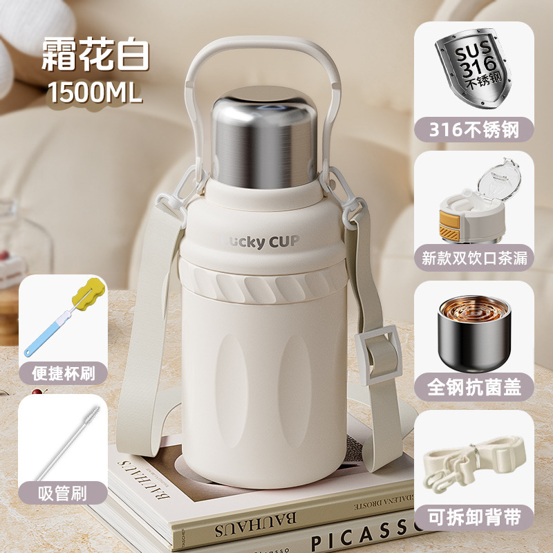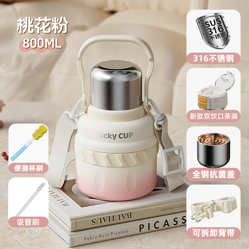 대용량 여성용 고급 물컵 316 스테인레스 스틸 보온병 컵 한 컵 더블 마시는 밀짚 컵 야외 휴대용 주전자