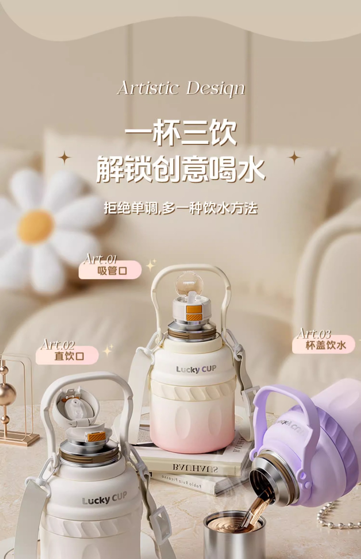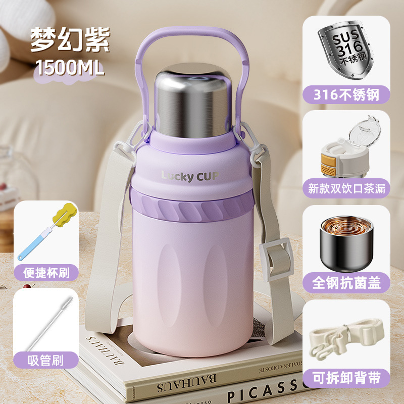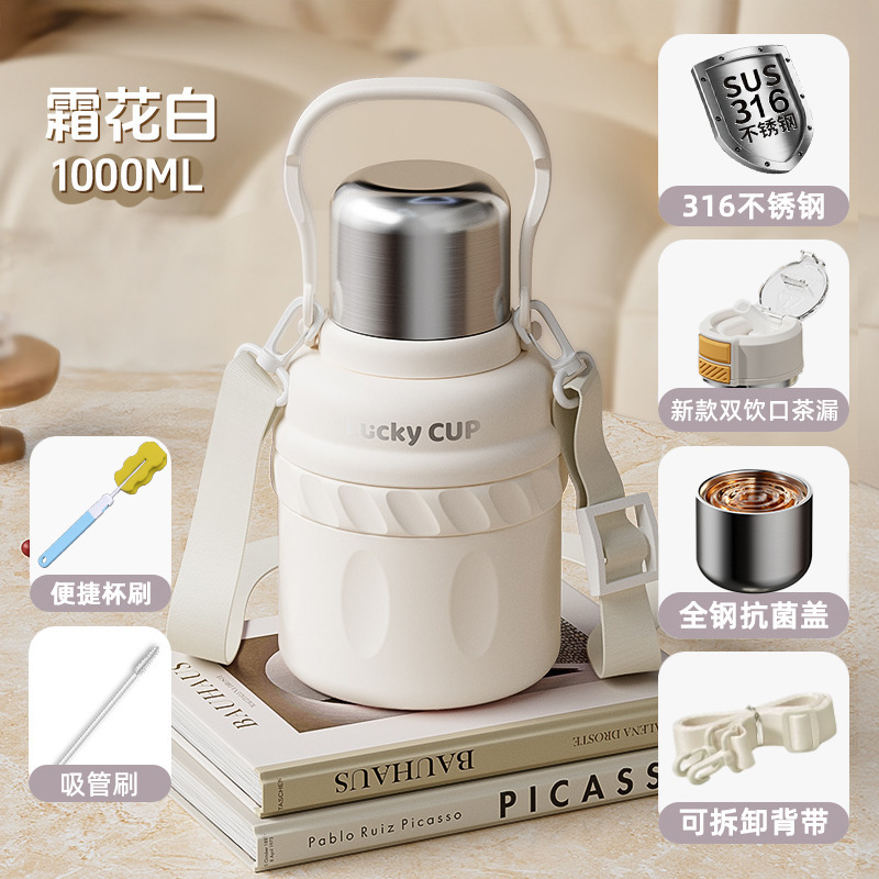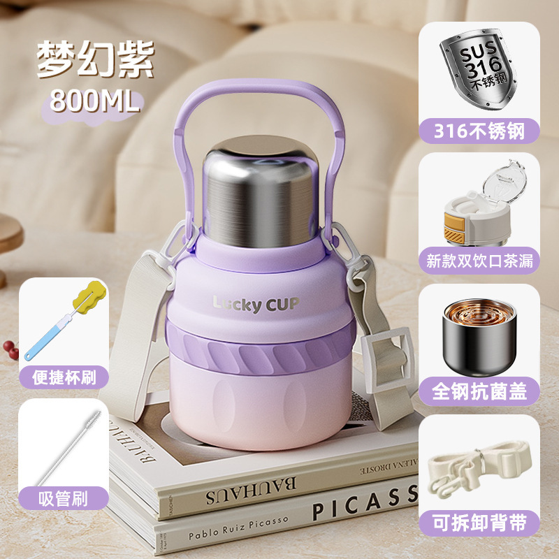 대용량 여성용 고급 물컵 316 스테인레스 스틸 보온병 컵 한 컵 더블 마시는 밀짚 컵 야외 휴대용 주전자