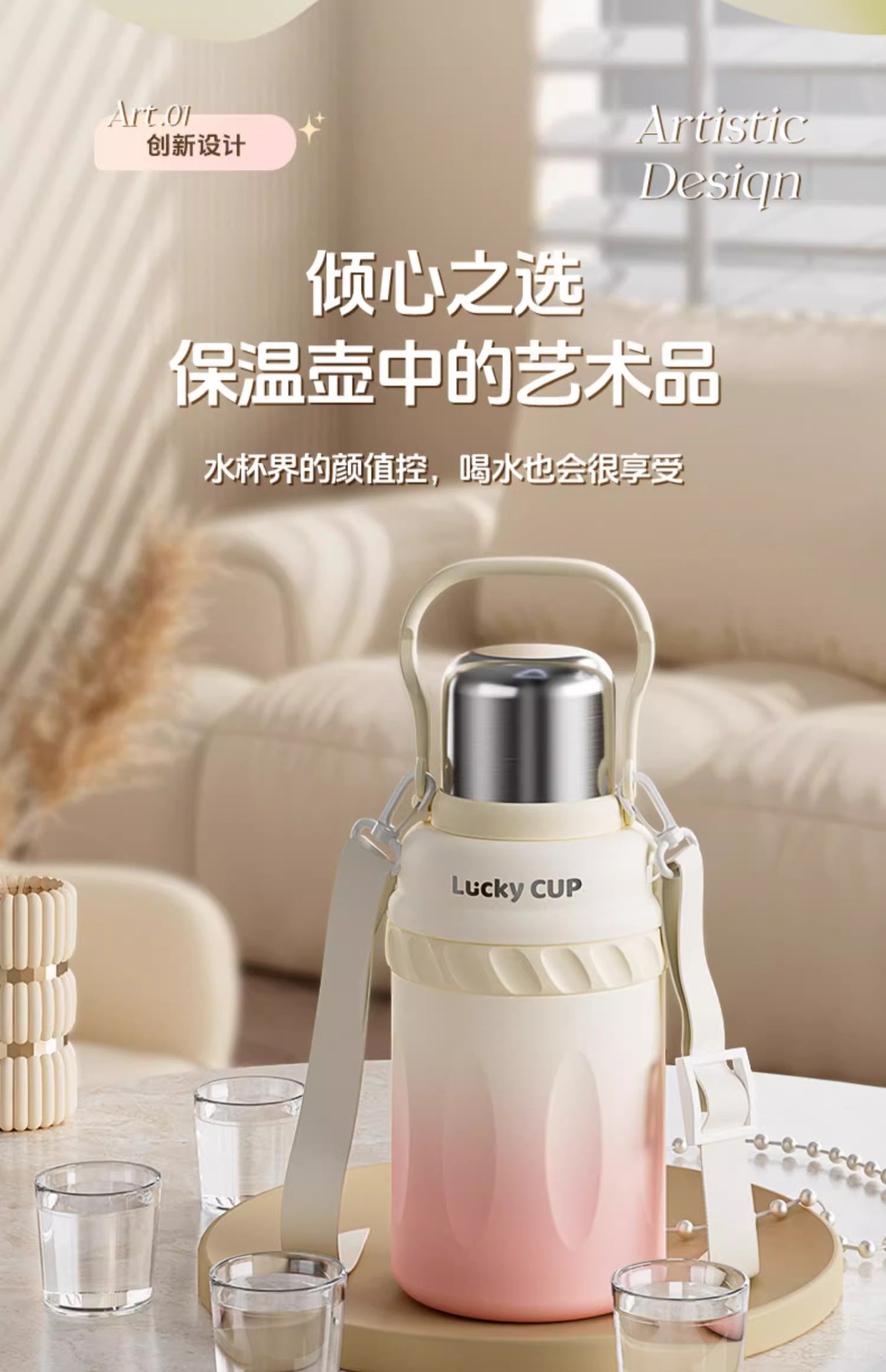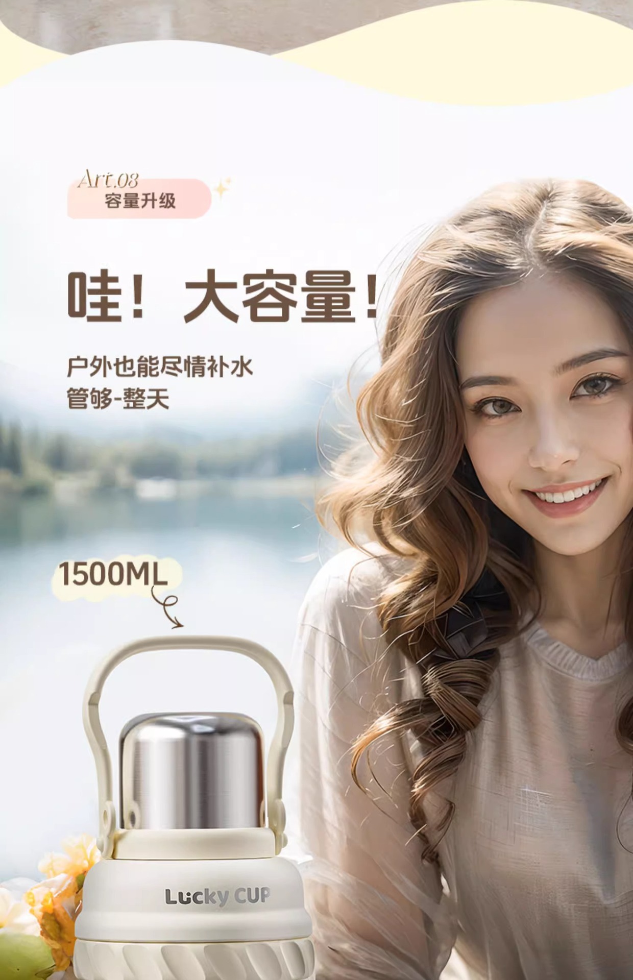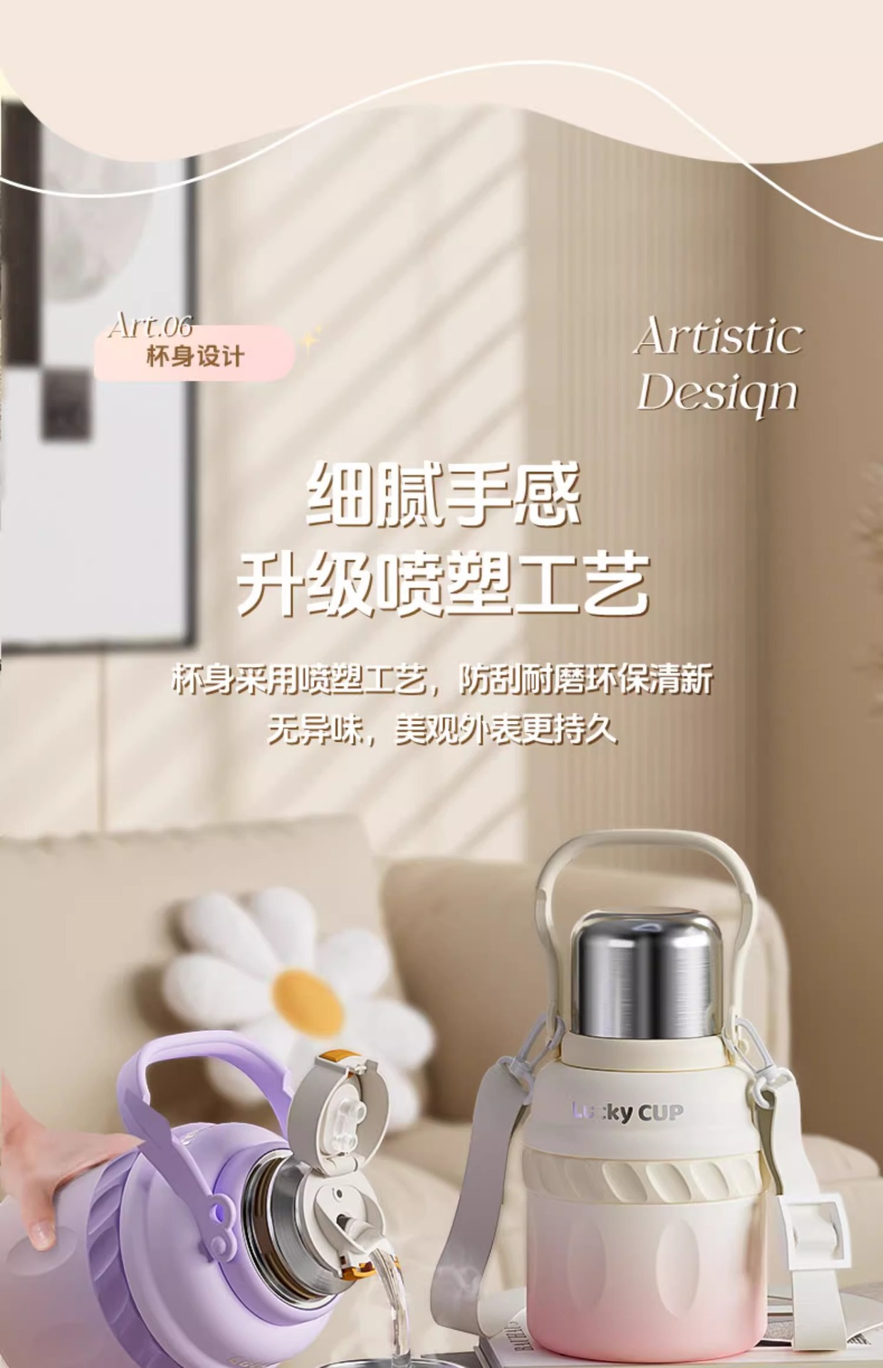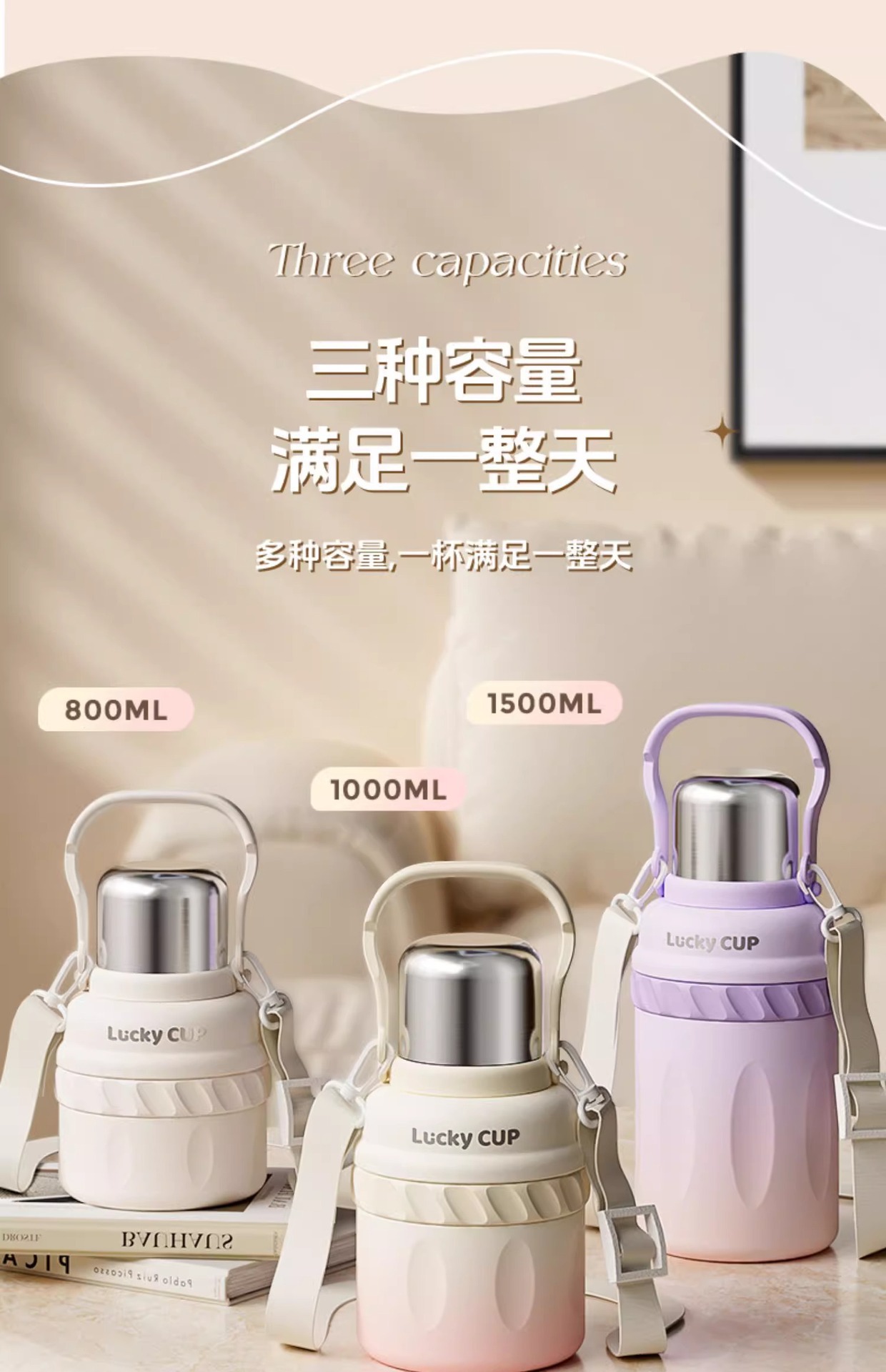 대용량 여성용 고급 물컵 316 스테인레스 스틸 보온병 컵 한 컵 더블 마시는 밀짚 컵 야외 휴대용 주전자스토어 가기