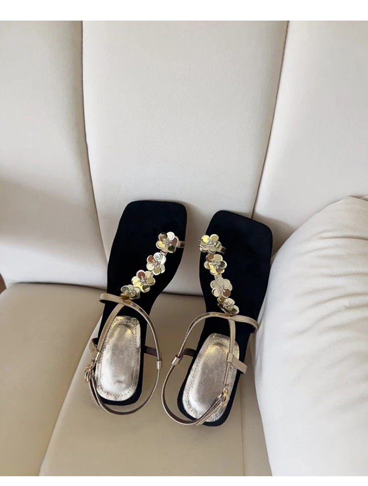 새로운 고급 스타일의 꽃무늬 스퀘어 토가 있는 여성용 패셔너블 샌들, 심플하고 절묘한 로마 신발스토어 가기