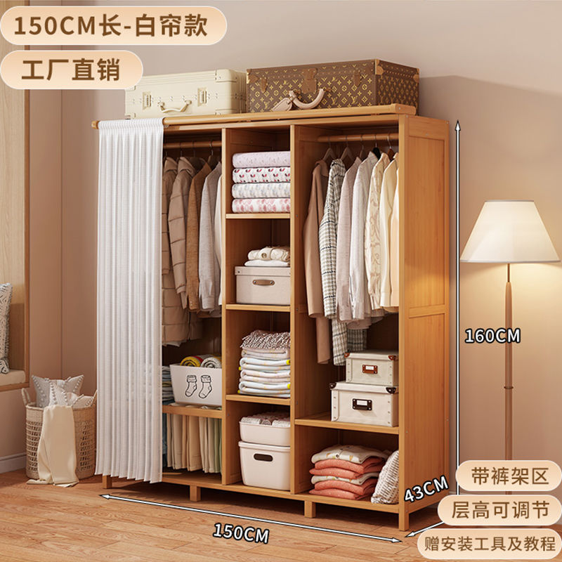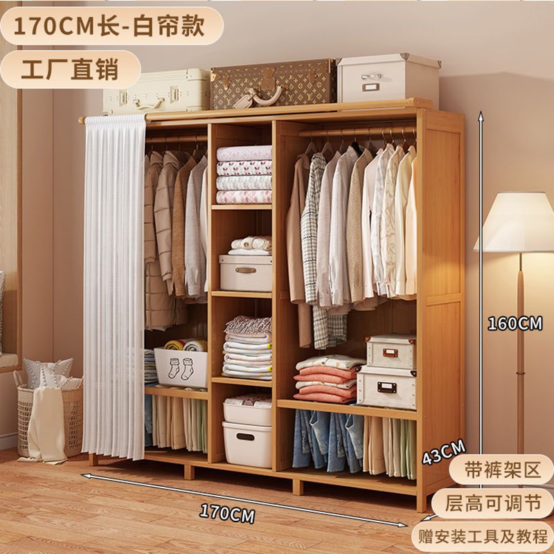 원목 간이 옷장 임대 방 방진 경제적이고 튼튼하고 내구성이 뛰어난 커튼이 있는 옷장 침실 대용량