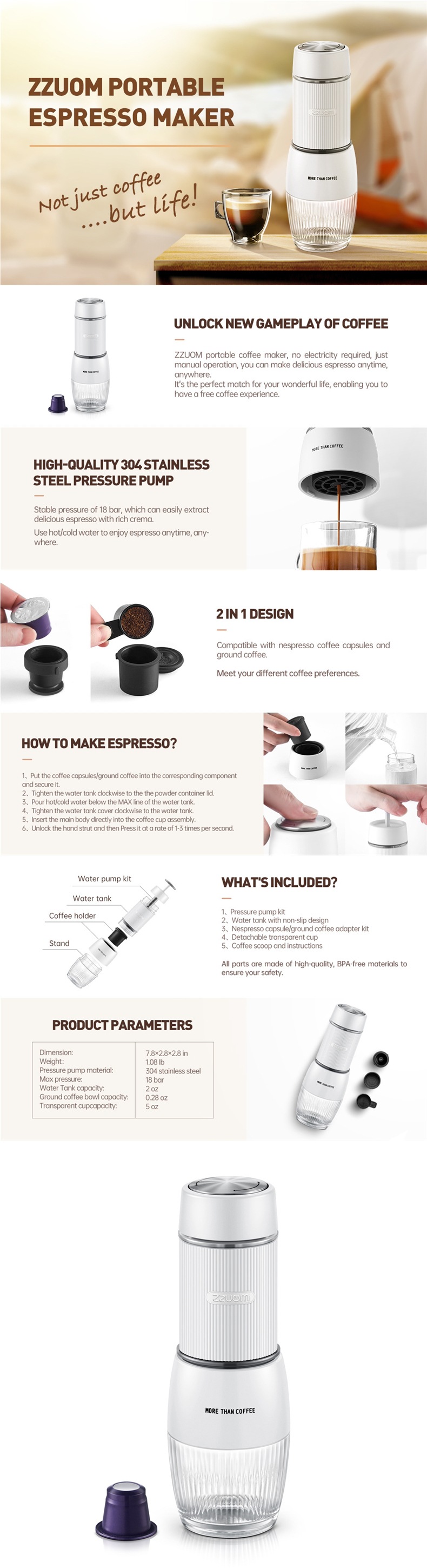 ZZUOM 핸드 프레스 휴대용 미니 커피 머신 가정용 소형 수동 캡슐 커피 파우더 범용 캡슐 머신