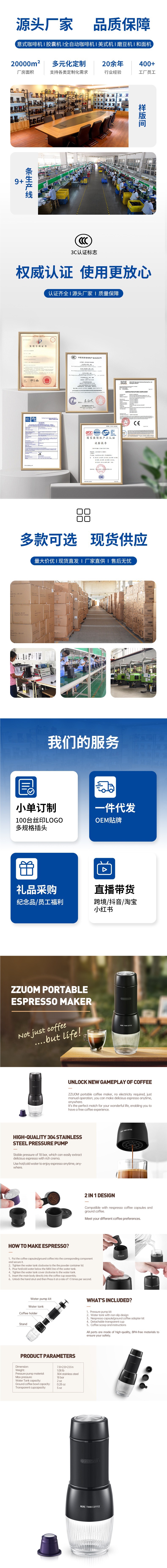 ZZUOM 핸드 프레스 휴대용 미니 커피 머신 가정용 소형 수동 캡슐 커피 파우더 범용 캡슐 머신스토어 가기