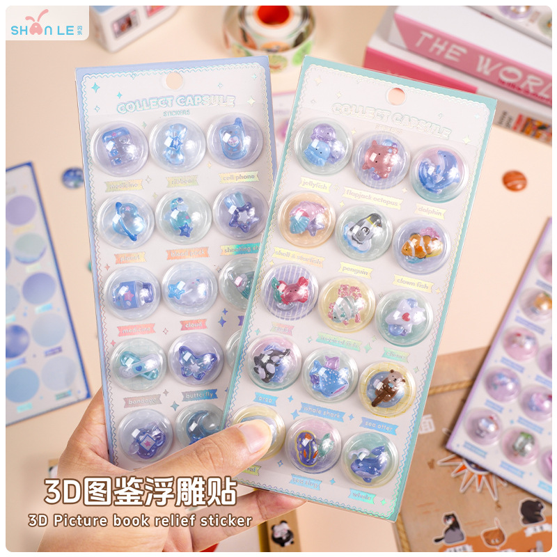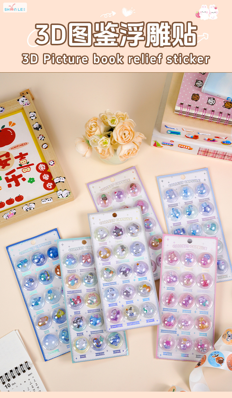 Shanle 정품 창조적 인 3D 그림 양각 스티커 만화 귀여운 모양 입체 인턴십 재료 어린이 교육 스티커스토어 가기