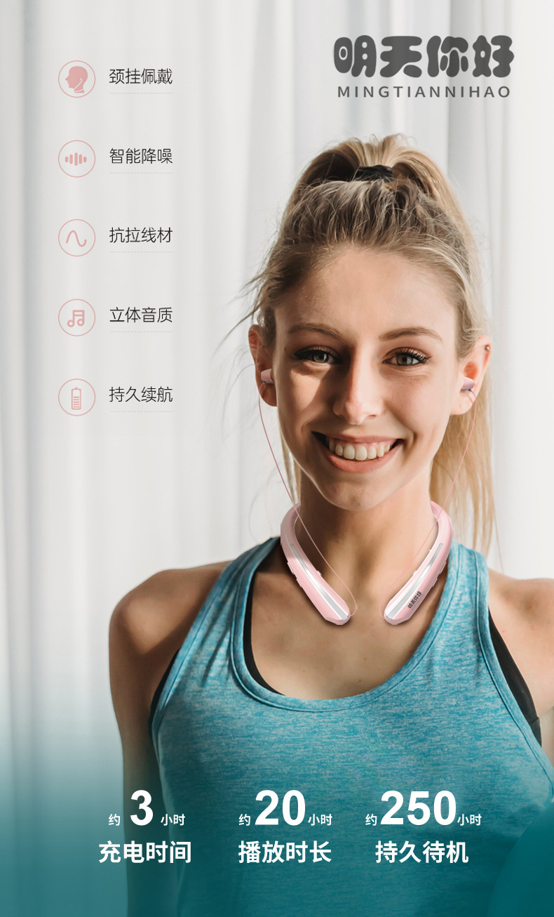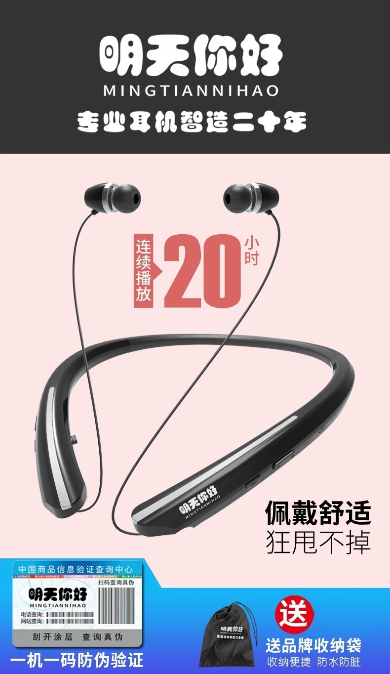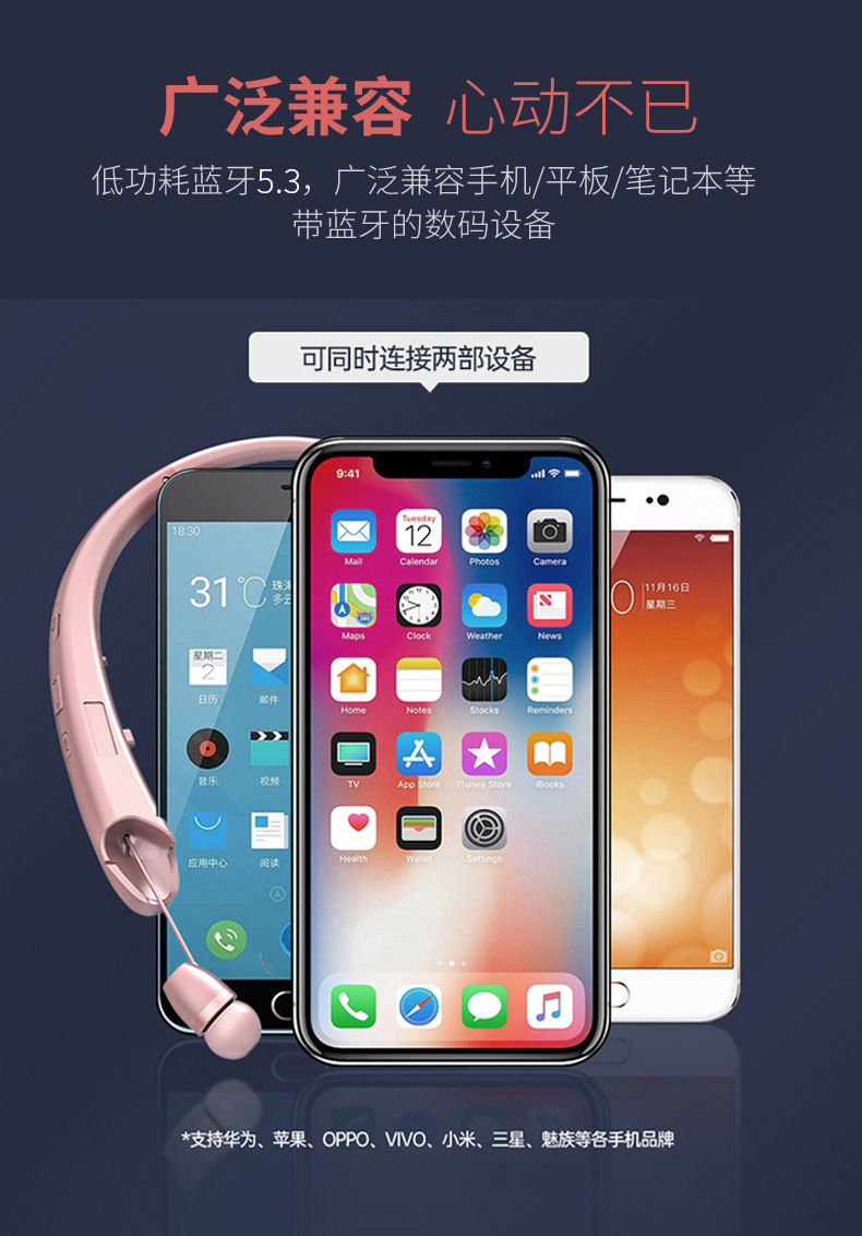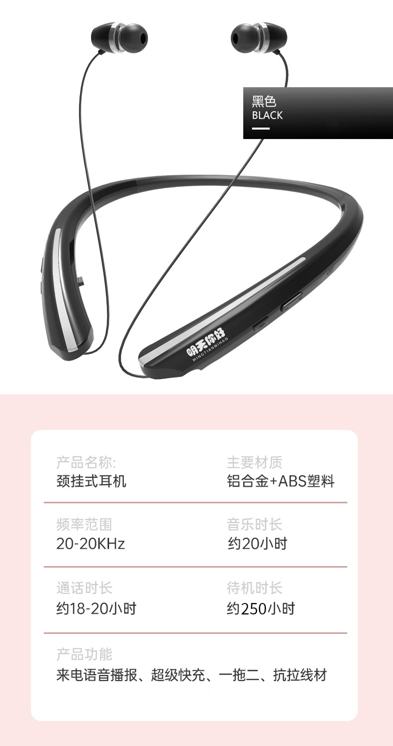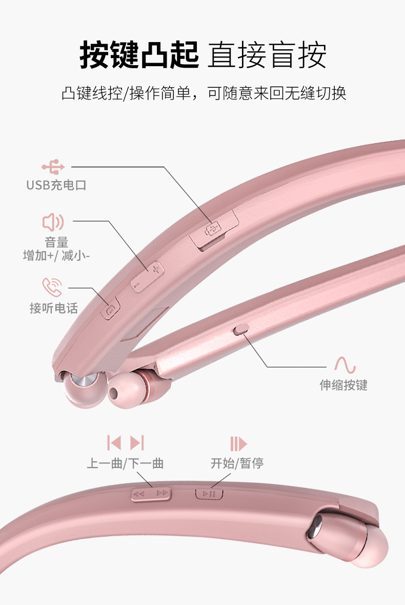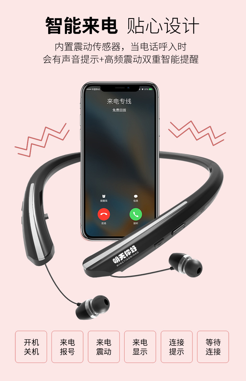 스포츠 블루투스 헤드셋, 목걸이형 블루투스 헤드셋, 배터리 수명이 매우 긴 목걸이형 접이식 케이블 헤드셋 HX801스토어 가기